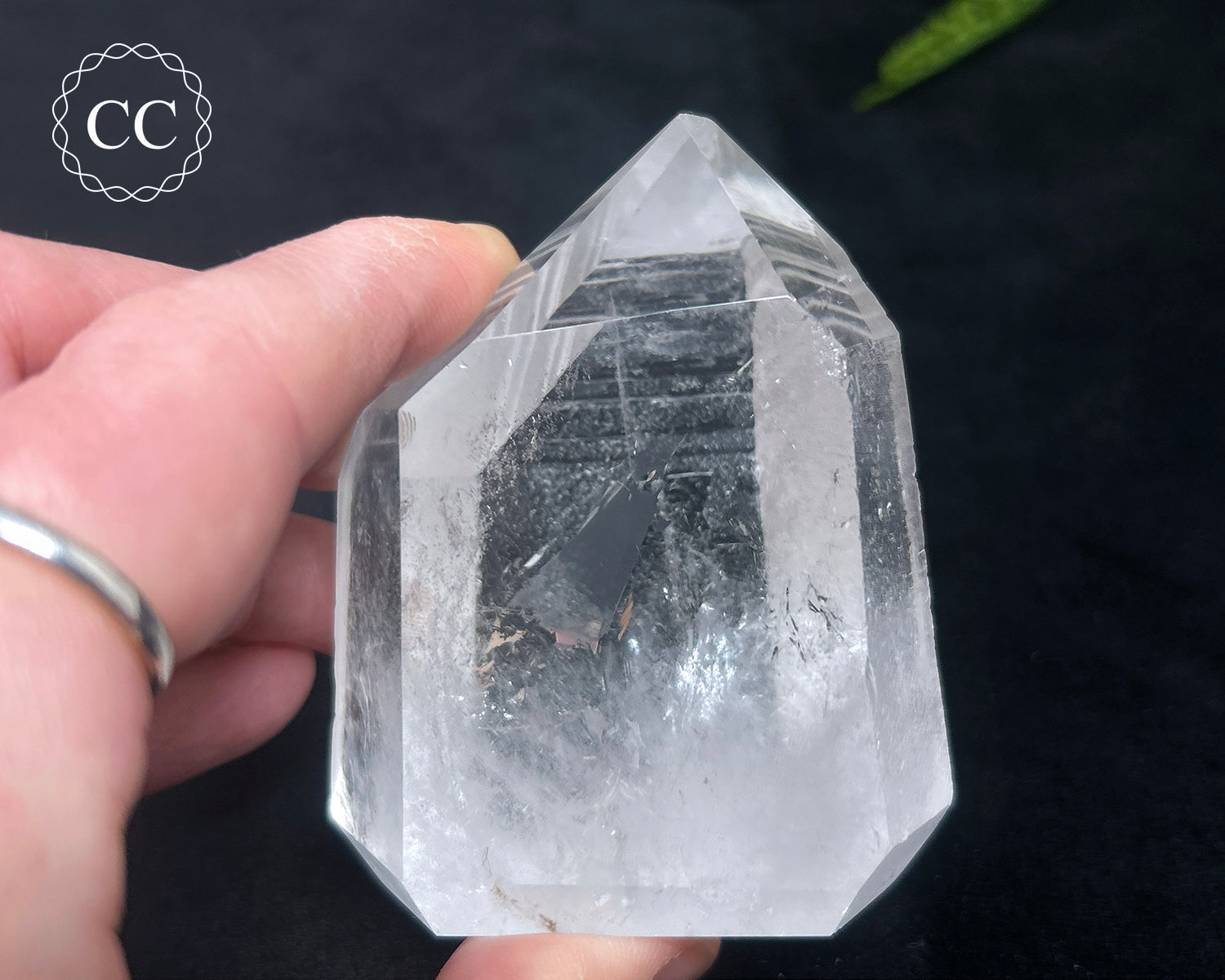 This beautiful Clear Quartz tower is from Brazil, with some sides of the Quartz left natural so you can see the striations and growth marks. You will receive the exact Clear Quartz crystal pictured.