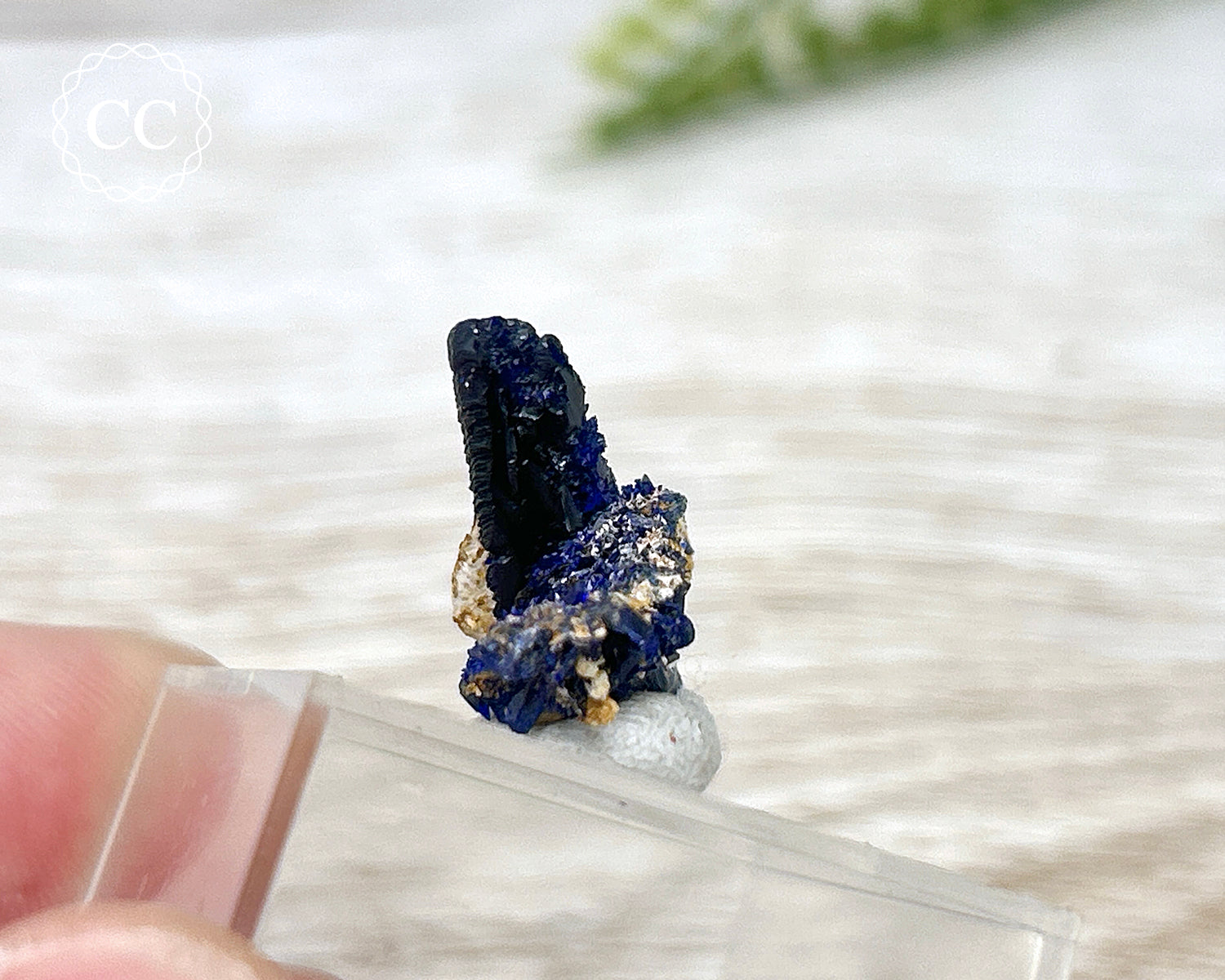 This crystalline Azurite specimen is from Sidi Ayed in Morocco, with elongated deep blue crystals. You will receive the exact Azurite specimen pictured.
