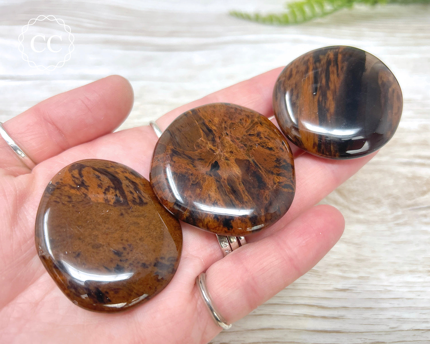 Mahogany Obsidian palm stones with beautiful deep black and brown patterns. You will receive one Mahogany Obsidian palmstone in the size of your choice, the photos show an example of some of the ones we have available.