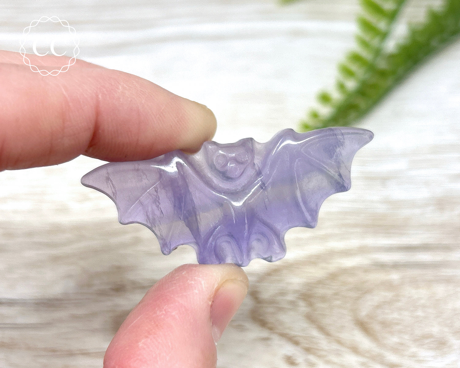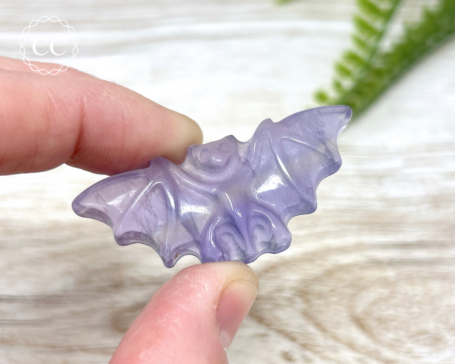 Super cute purple Fluorite bats, perfect for Halloween! You will receive one Fluorite Bat, the photos show an example of the ones we have available, each one is approx 51 mm wide
