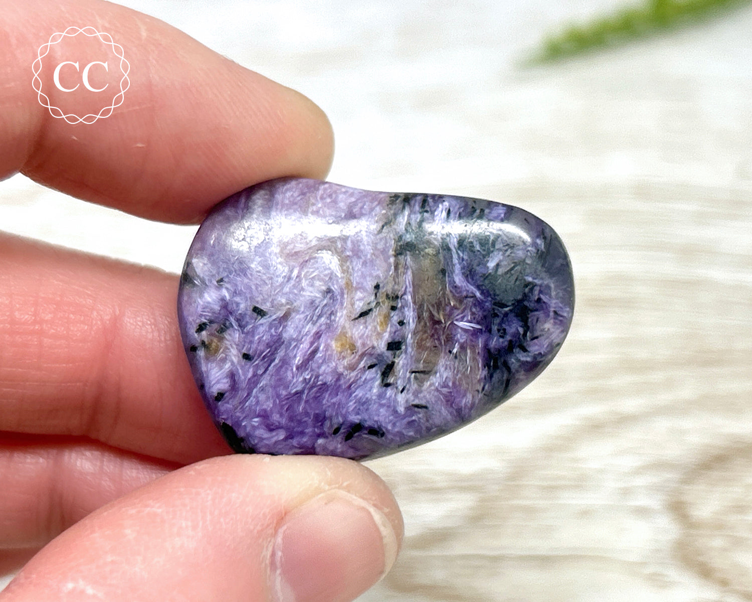 Charoite pebble from Russia with beautiful purple colour. You will receive the exact Charoite crystal pictured.