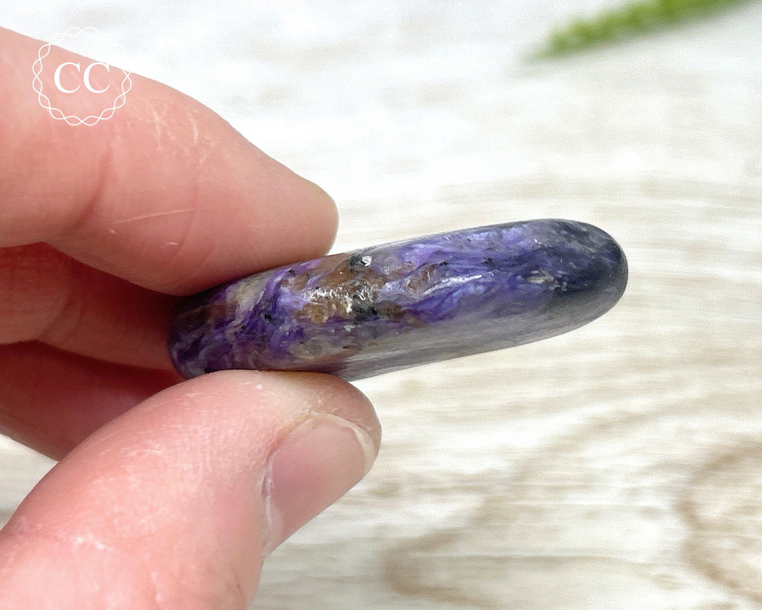 Charoite pebble from Russia with beautiful purple colour. You will receive the exact Charoite crystal pictured.