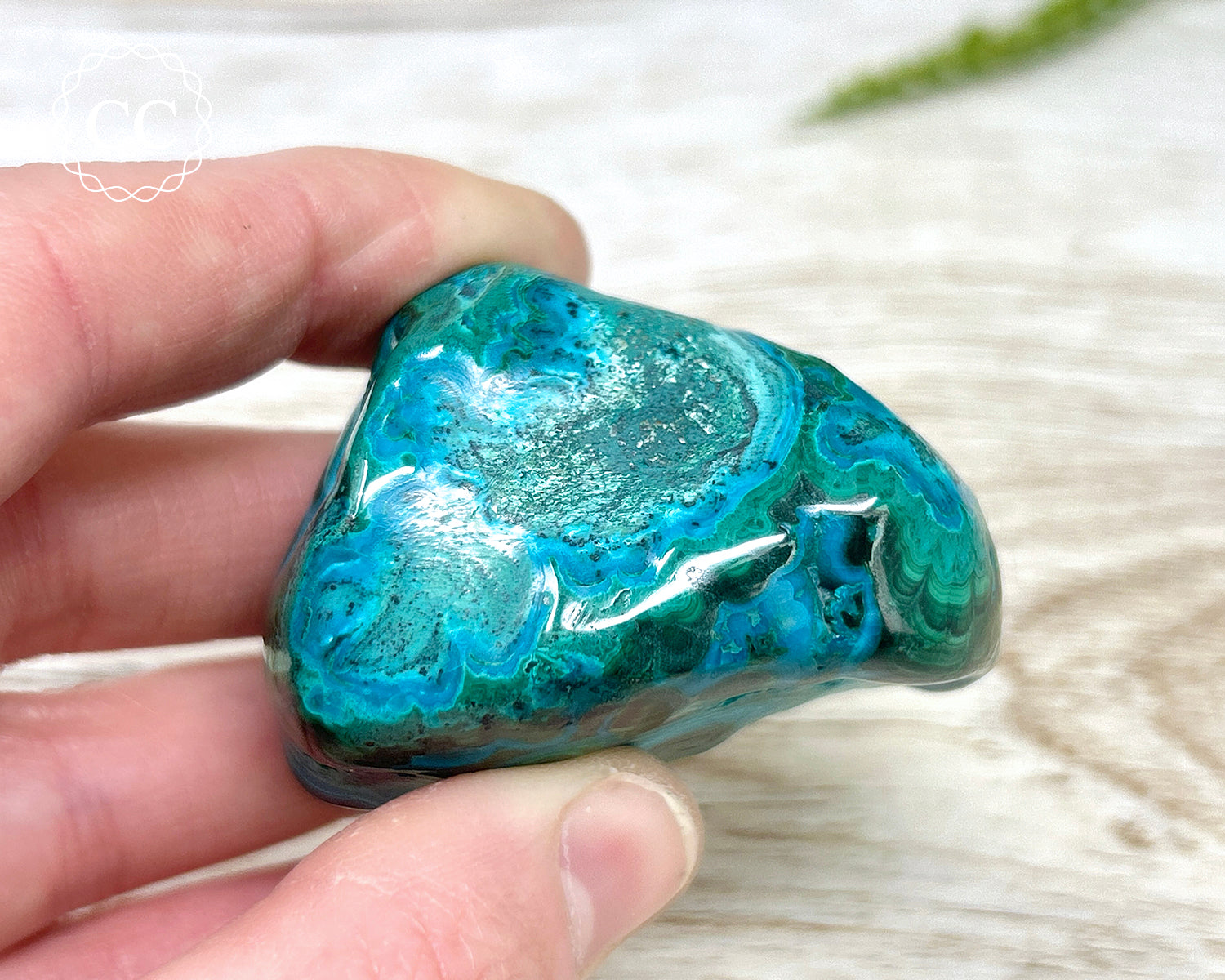 This beautiful example of Malachite with Chrysocolla has been hand picked for it's wonderful swirling patterns and striking deep colours. You will receive the exact crystal shown in the photos.
