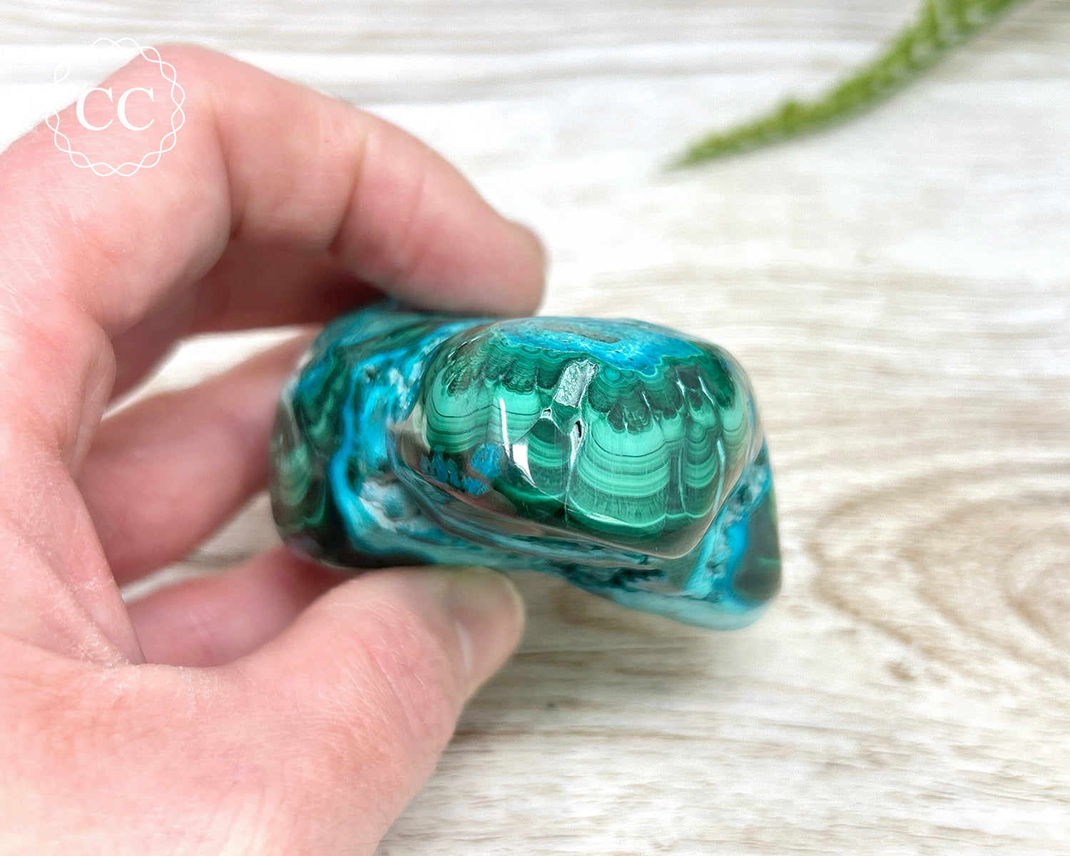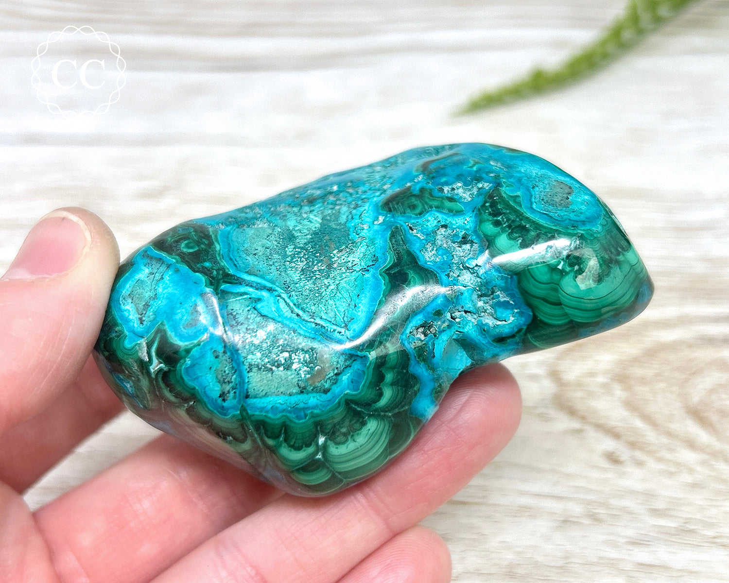 This beautiful example of Malachite with Chrysocolla has been hand picked for it's wonderful swirling patterns and striking deep colours. You will receive the exact crystal shown in the photos.
