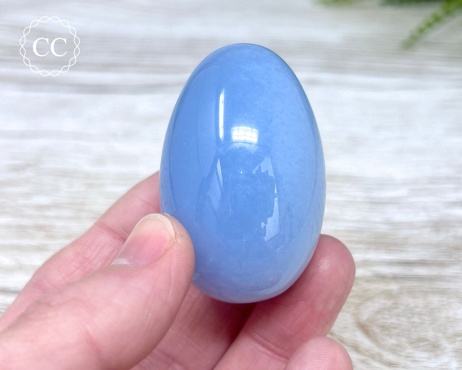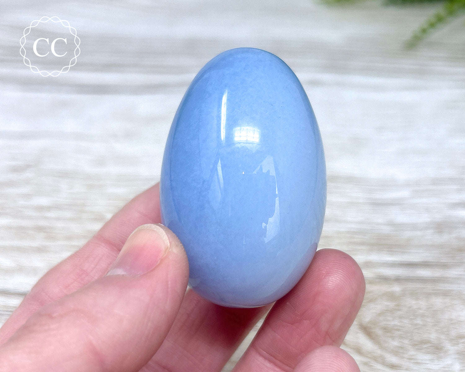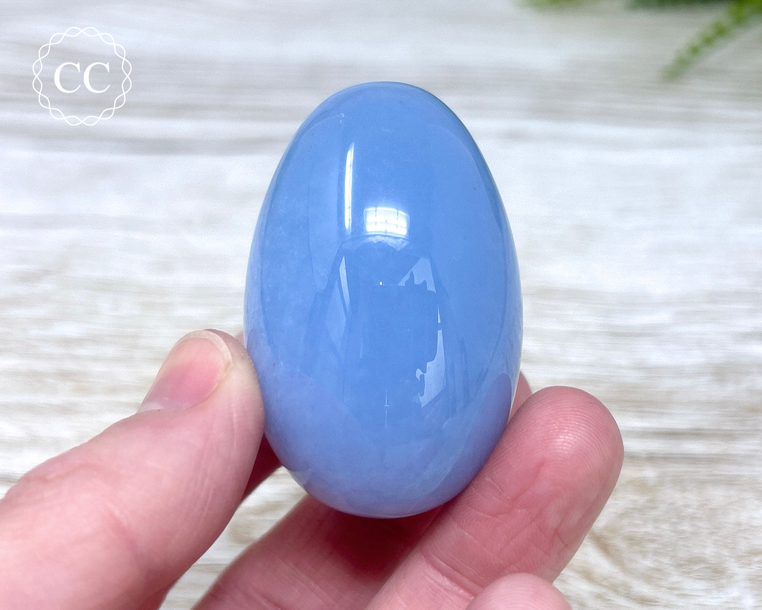 Beautiful soft toned Blue Chalcedony egg. You will receive the exact Blue Chalcedony crystal pictured.