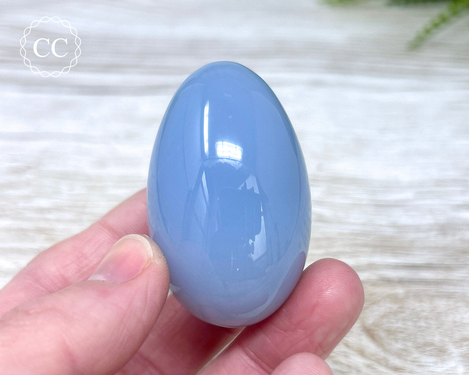 Beautiful soft toned Blue Chalcedony egg. You will receive the exact Blue Chalcedony crystal pictured.