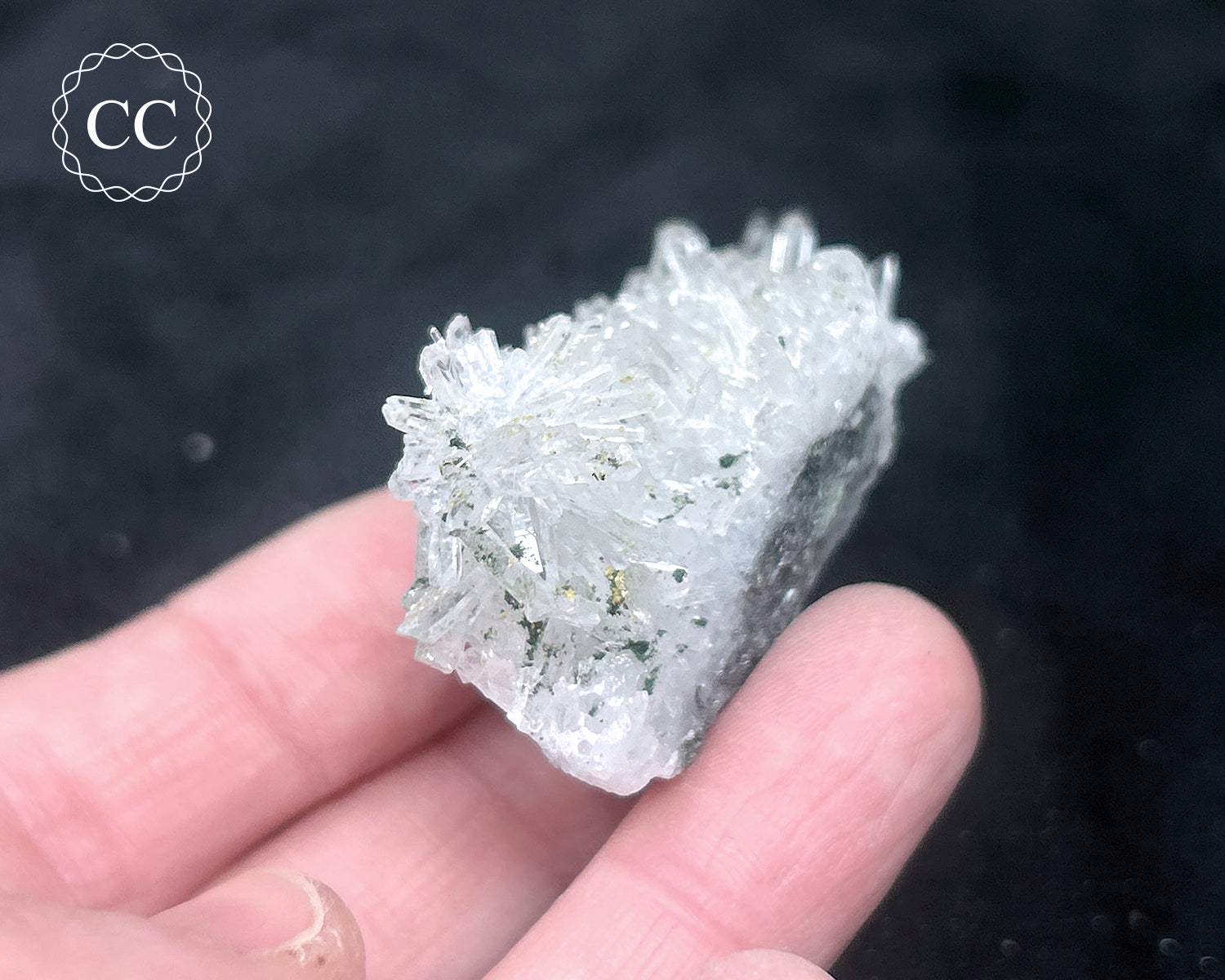 This Needle Quartz cluster from Bulgaria has beautifully clear, parallel elongated crystals, and some green Chlorite present and even some green Epidote inclusions! You will receive the exact item pictured.