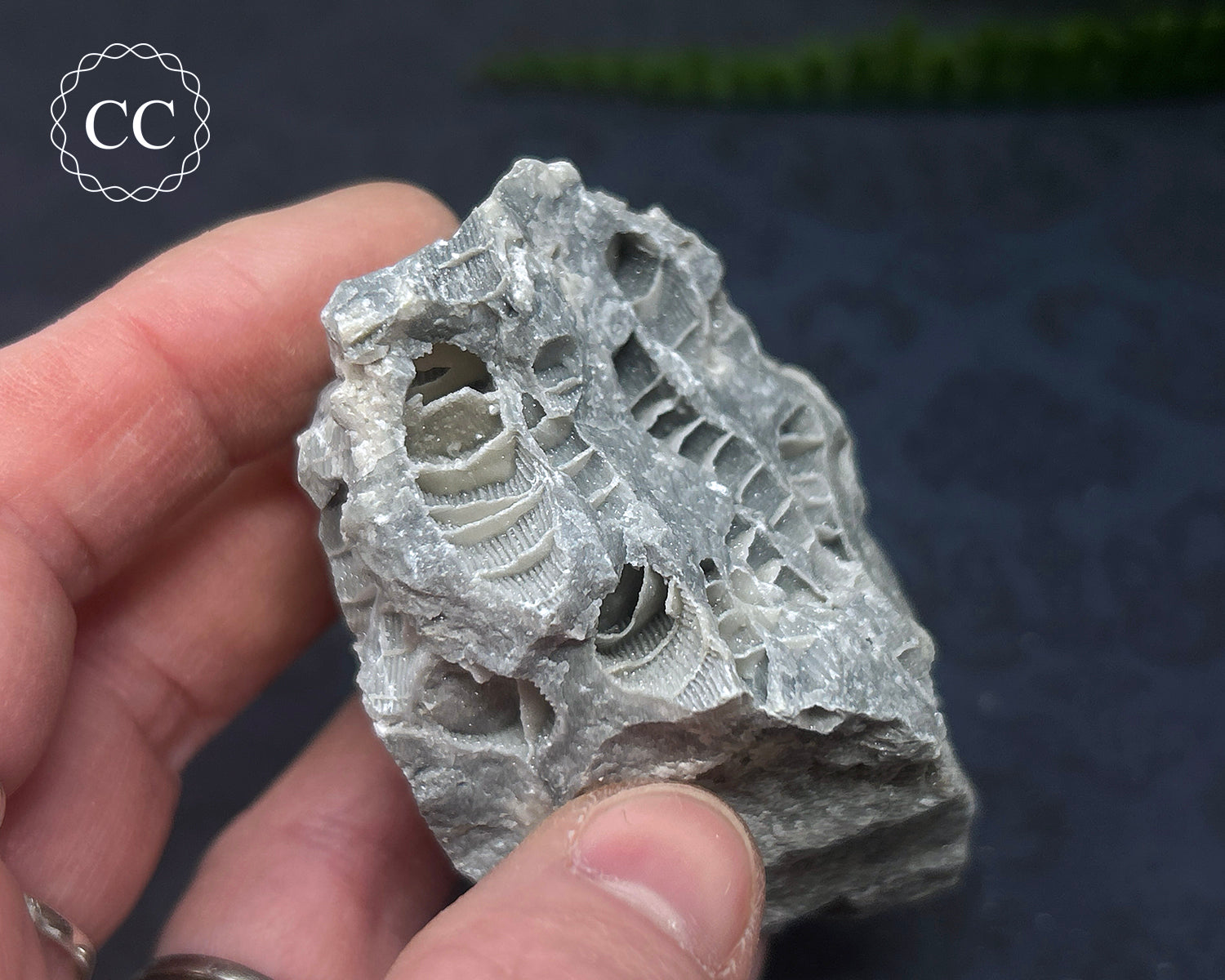 This beautiful sparkly specimen is formed of fossilised Horn Coral from Clay Center, Ohio. The empty coral tubes lined with tiny sparkling Calcite crystals that cause it to fluoresce slightly yellow under longwave UV. You will receive the exact item pictured.