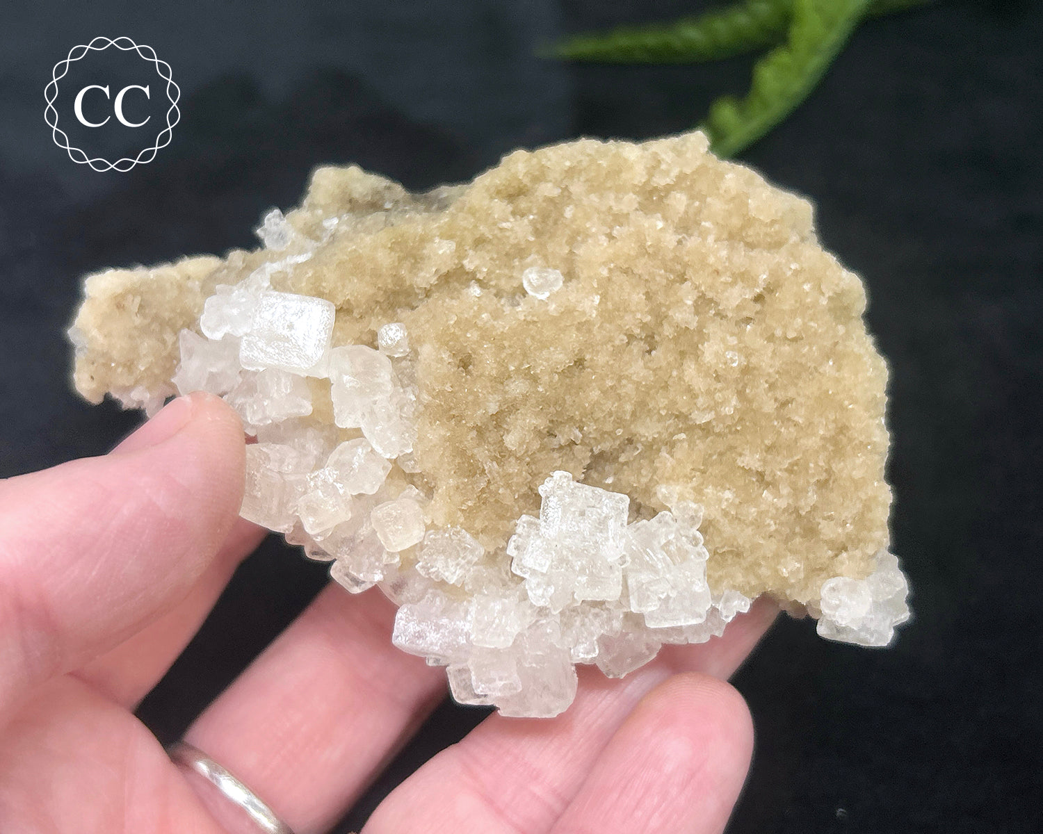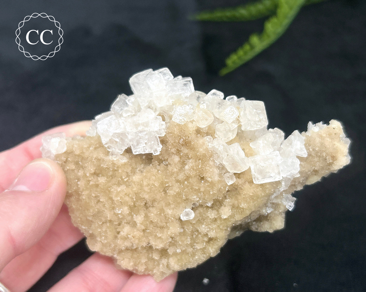This sweet Halite cluster specimen is from California. This cluster is sensitive to damp and humid environments so keep dry. You will receive the exact Halite crystal pictured.