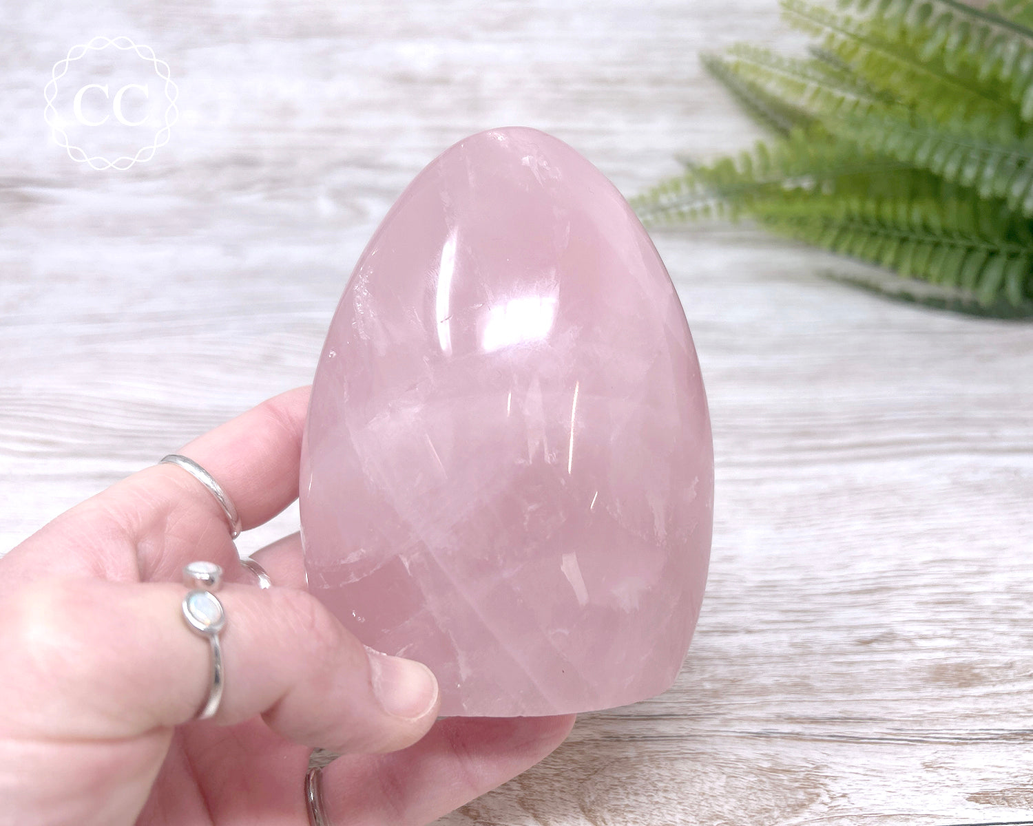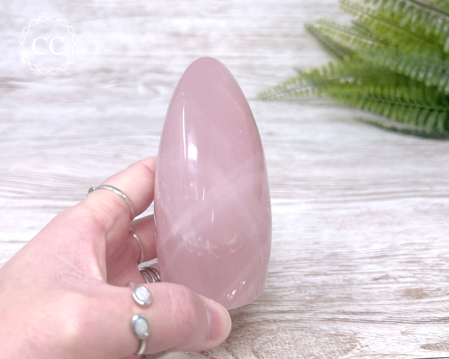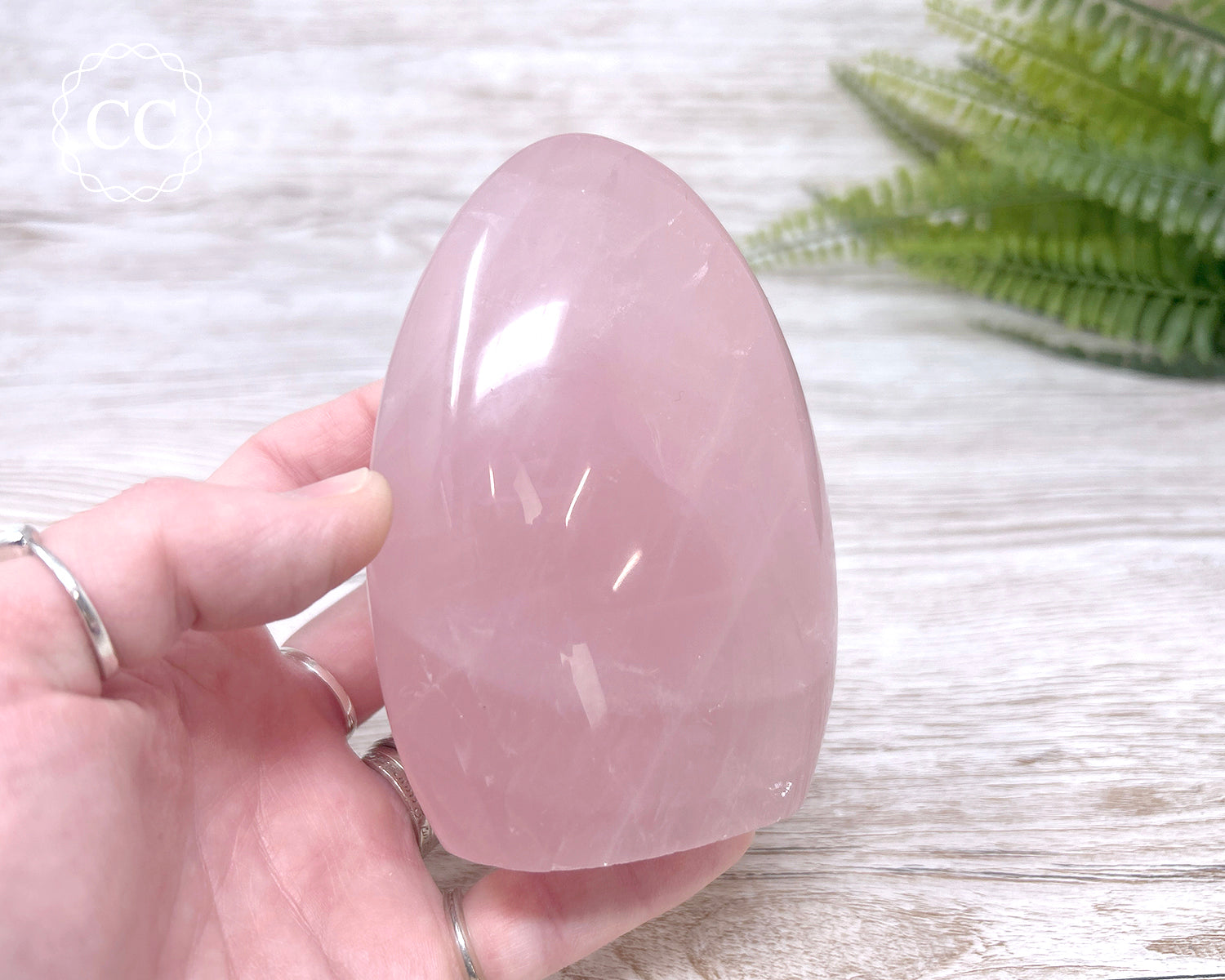 Beautiful pink Rose Quartz cut base polished freeform from Madagascar. You will receive the exact Rose Quartz crystal pictured.