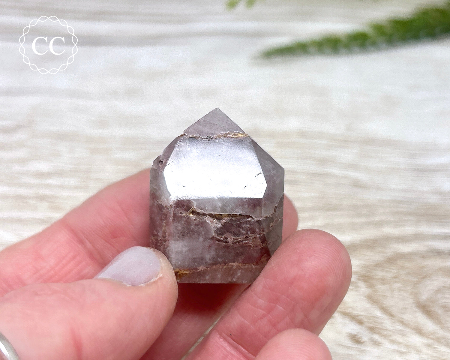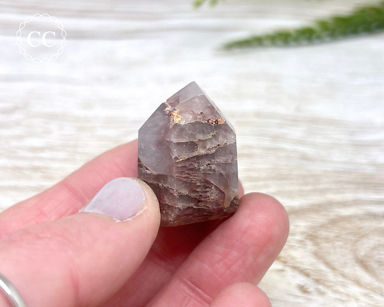 Gorgeous Pink Hematite Quartz tower from Minas Gerais, Brazil. These are also known as Pink Lithium Quartz. You will receive the exact crystal pictured, please note these towers may have small imperfections due to the material they are polished from.