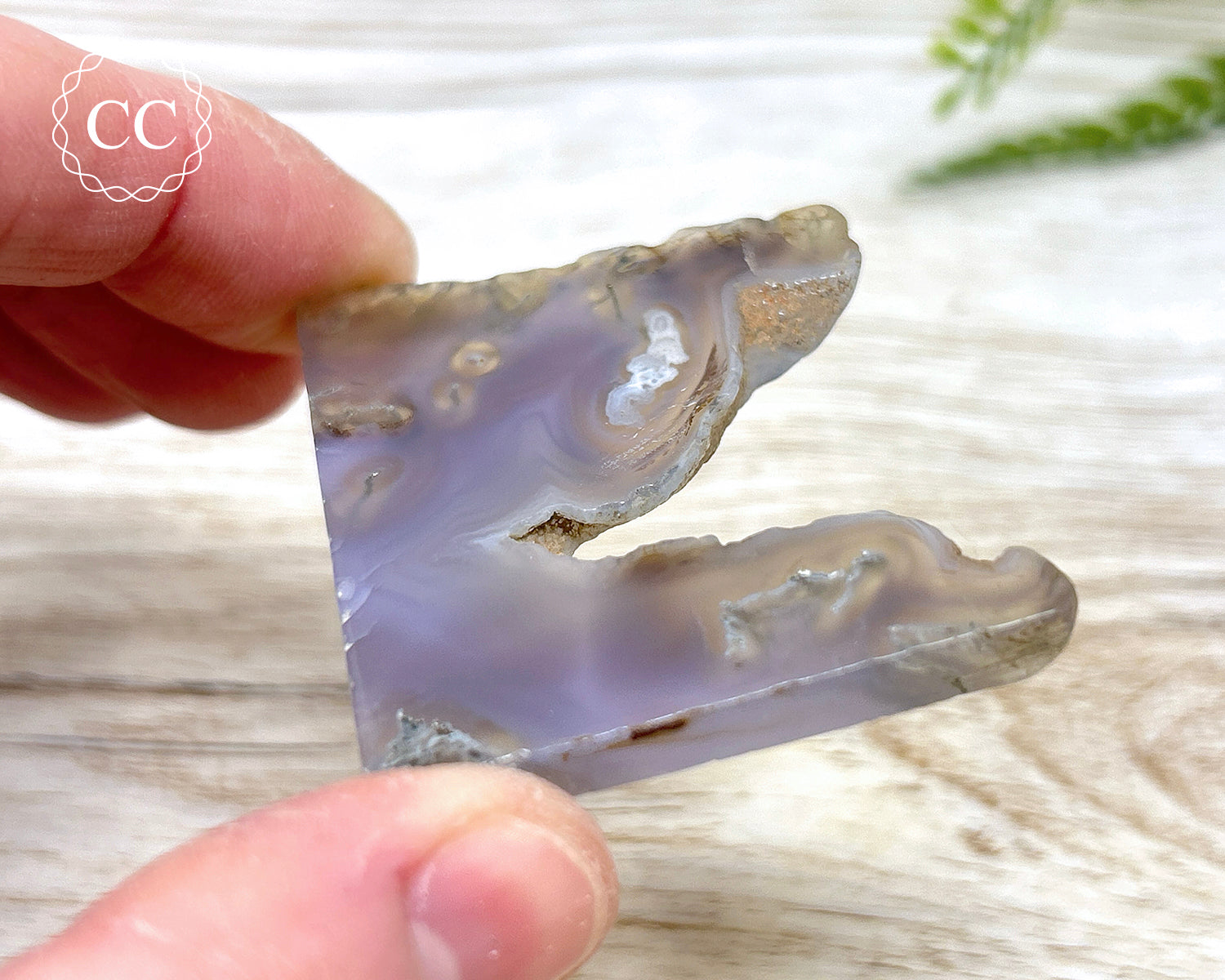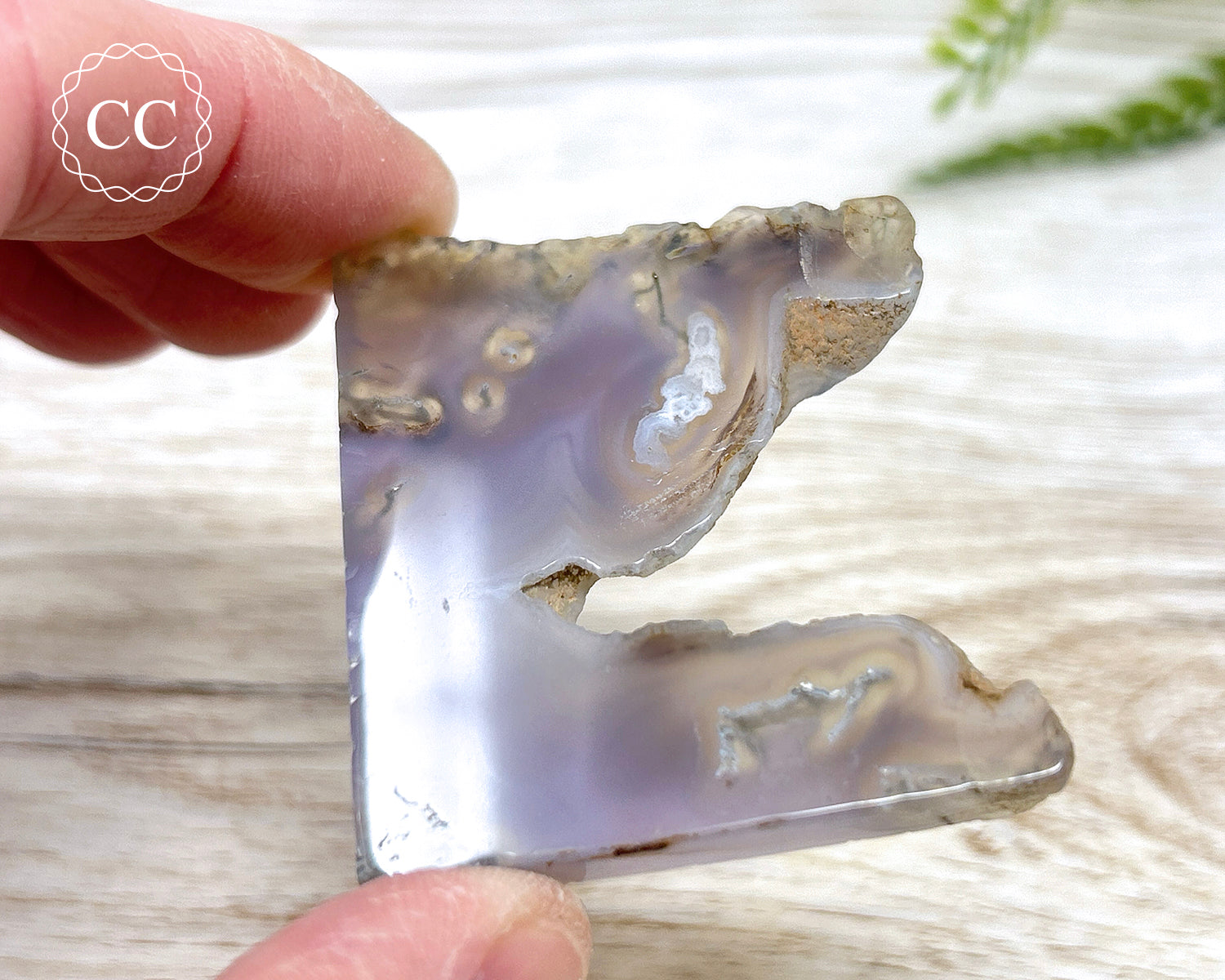 Gorgeous natural soft lavender purple Moss Agate polished slice from India. You will receive the exact crystal pictured.