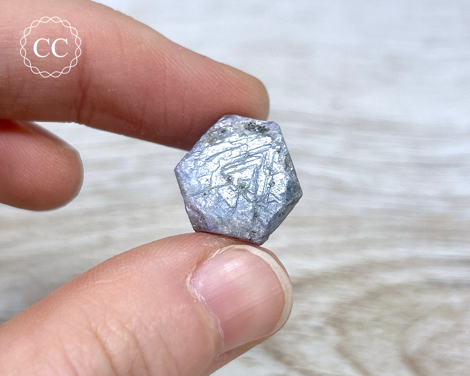 This lovely all-natural Sapphire crystal from Madagascar is a nice shade of soft blue, you will receive the exact crystal pictured.