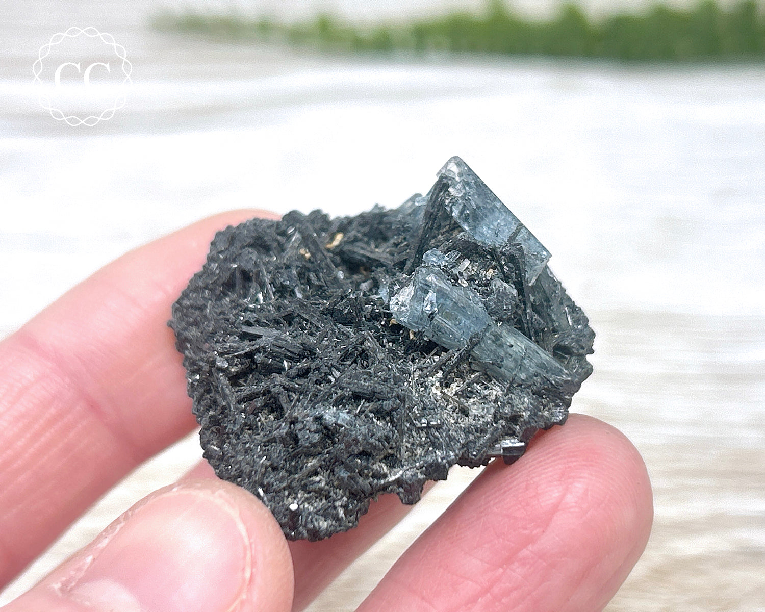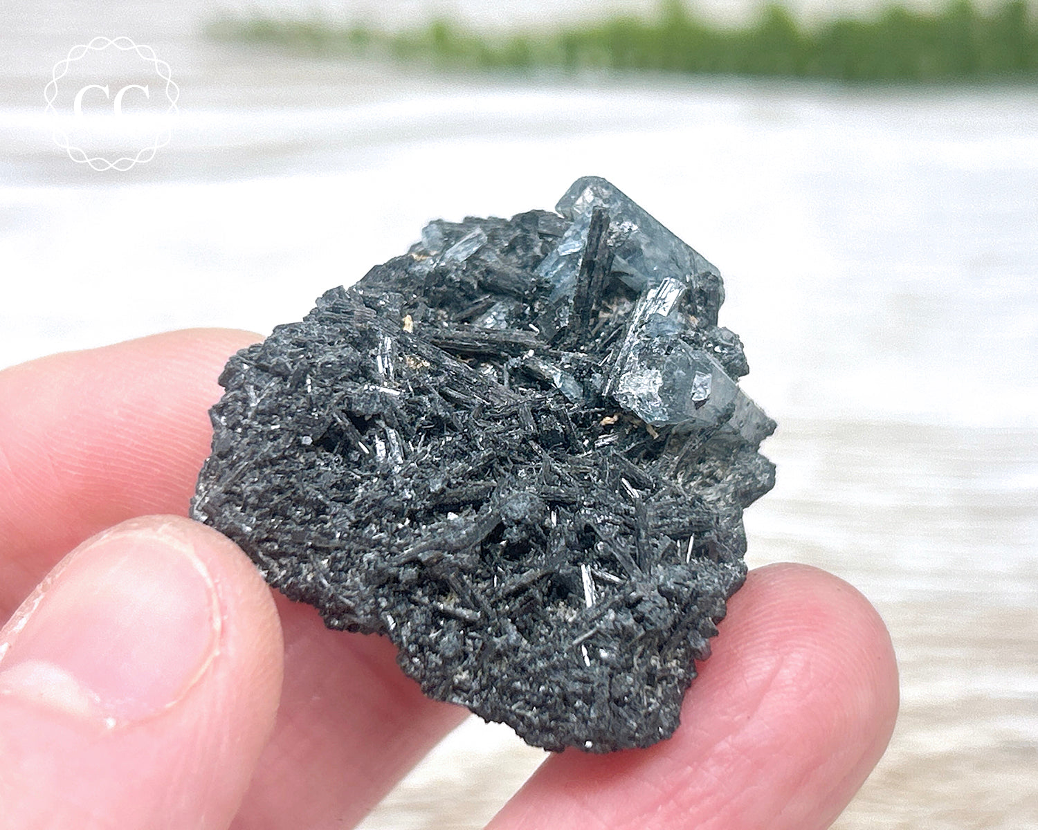 This lovely Aquamarine specimen with Black Tourmaline is from Erongo in Namibia. You will receive the exact Aquamarine crystal shown in the photos.