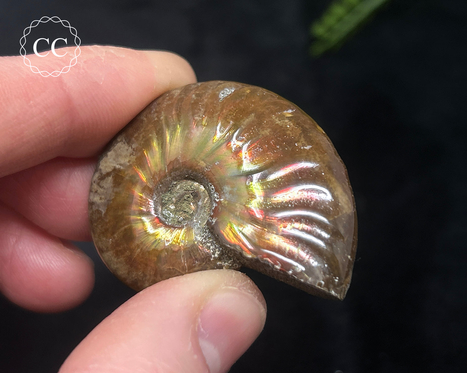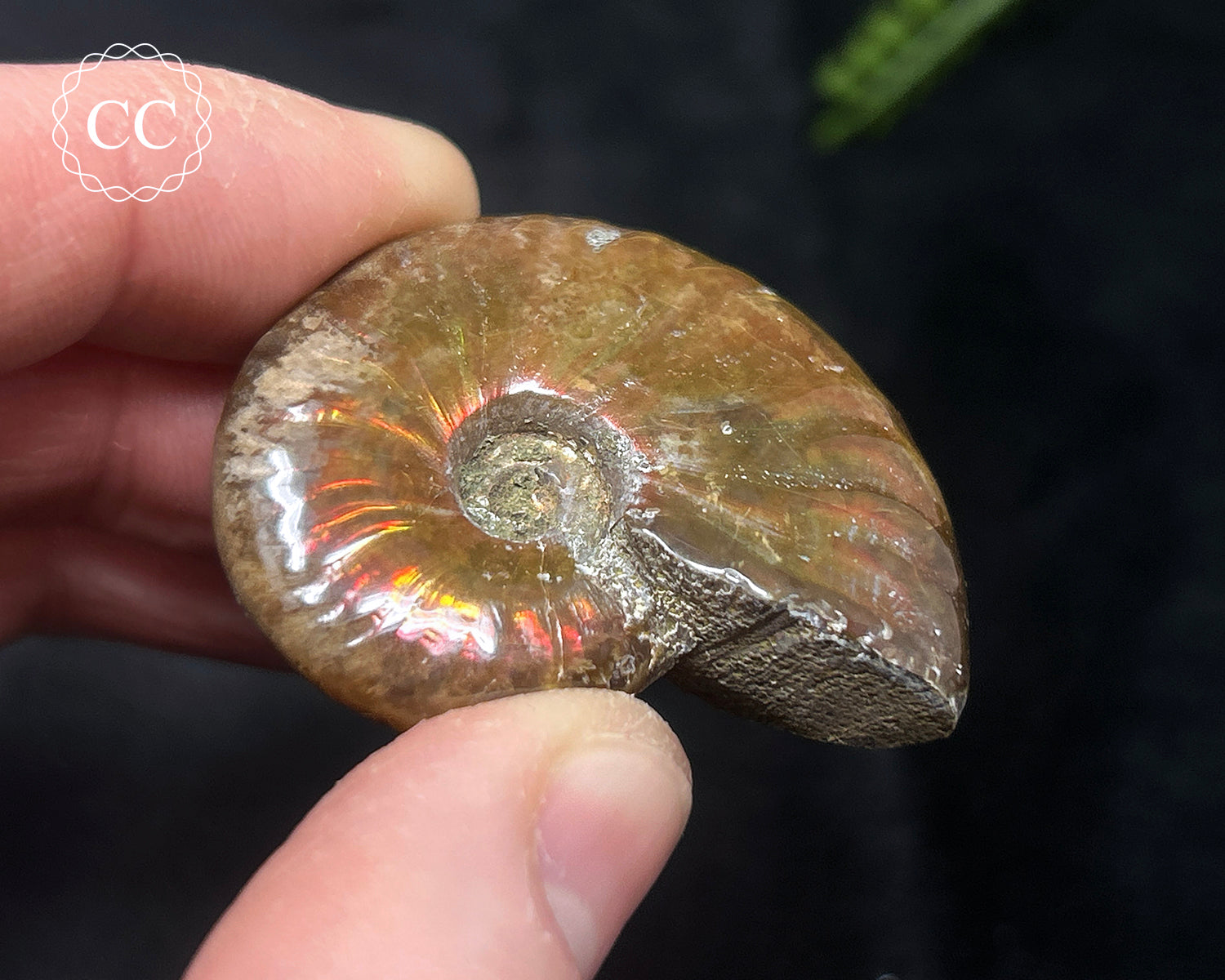 This Ammonite has been hand selected for its beautiful form, andᅠlovely red tinted rainbow iridescence to the outerᅠshell. You will receive the exact crystal in the photo.