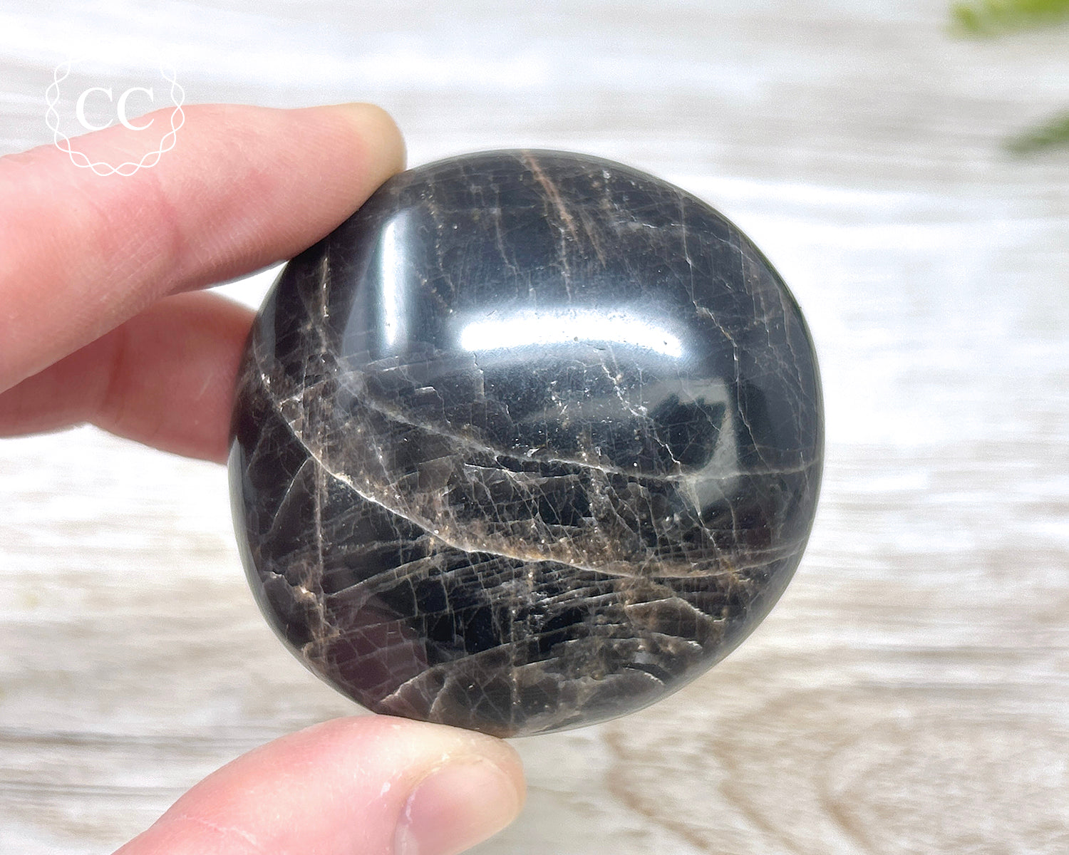Beautiful chunky Black Moonstone palmstone from Madagascar. You will receive the exact Black Moonstone crystal pictured.