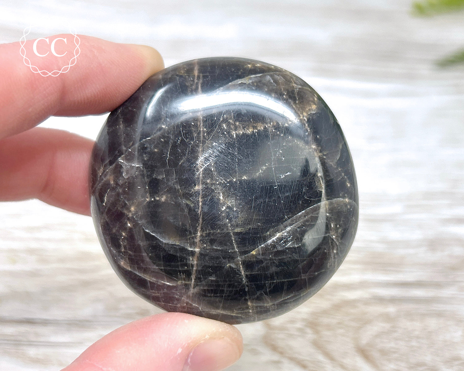 Black Moonstone is a lesser known variety of the more popular peach/pink Moonstone, with the same beautiful chatoyant/shimmer effect when the crystal is moved about.