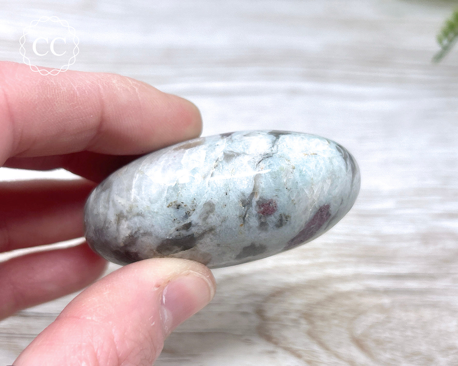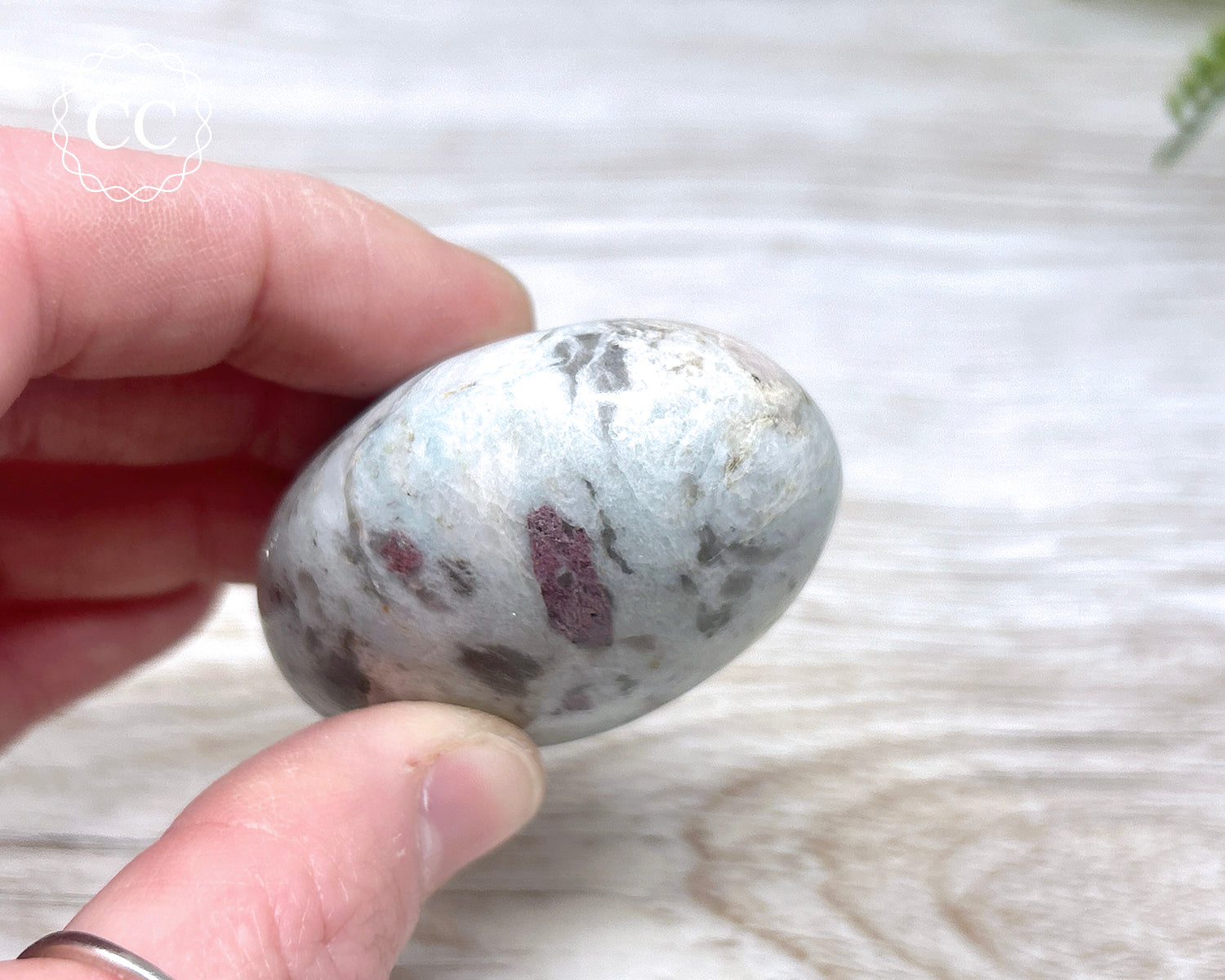 Rubellite & Cleavelandite Chunky Palm Stone #1