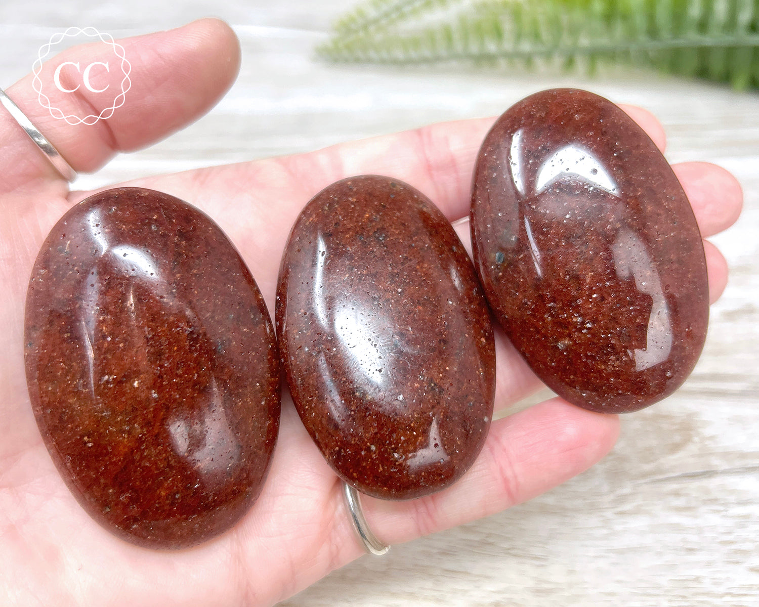 These unusually dark Red Aventurine palmstones are also known as Raspberry or Strawberry Aventurine. You will receive one Red Aventurine Palm Stone, an example of the ones we have are shown in the photos, each one is approx 54 to 62 mm across.