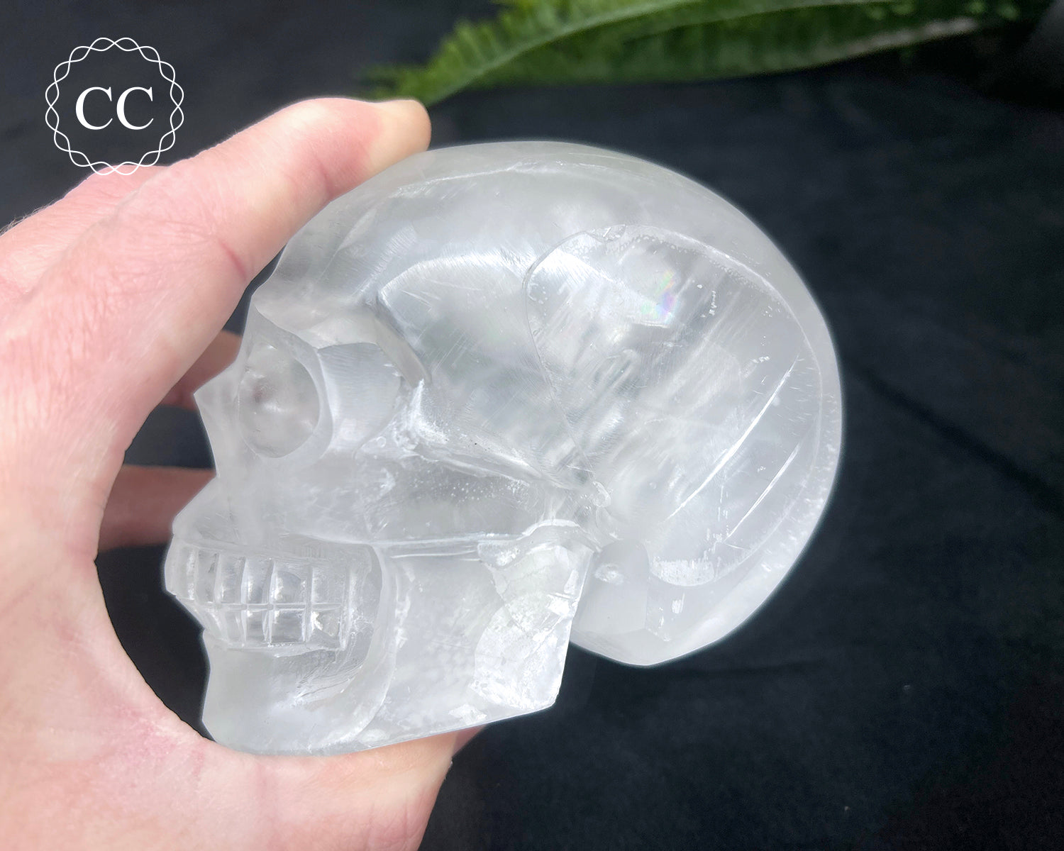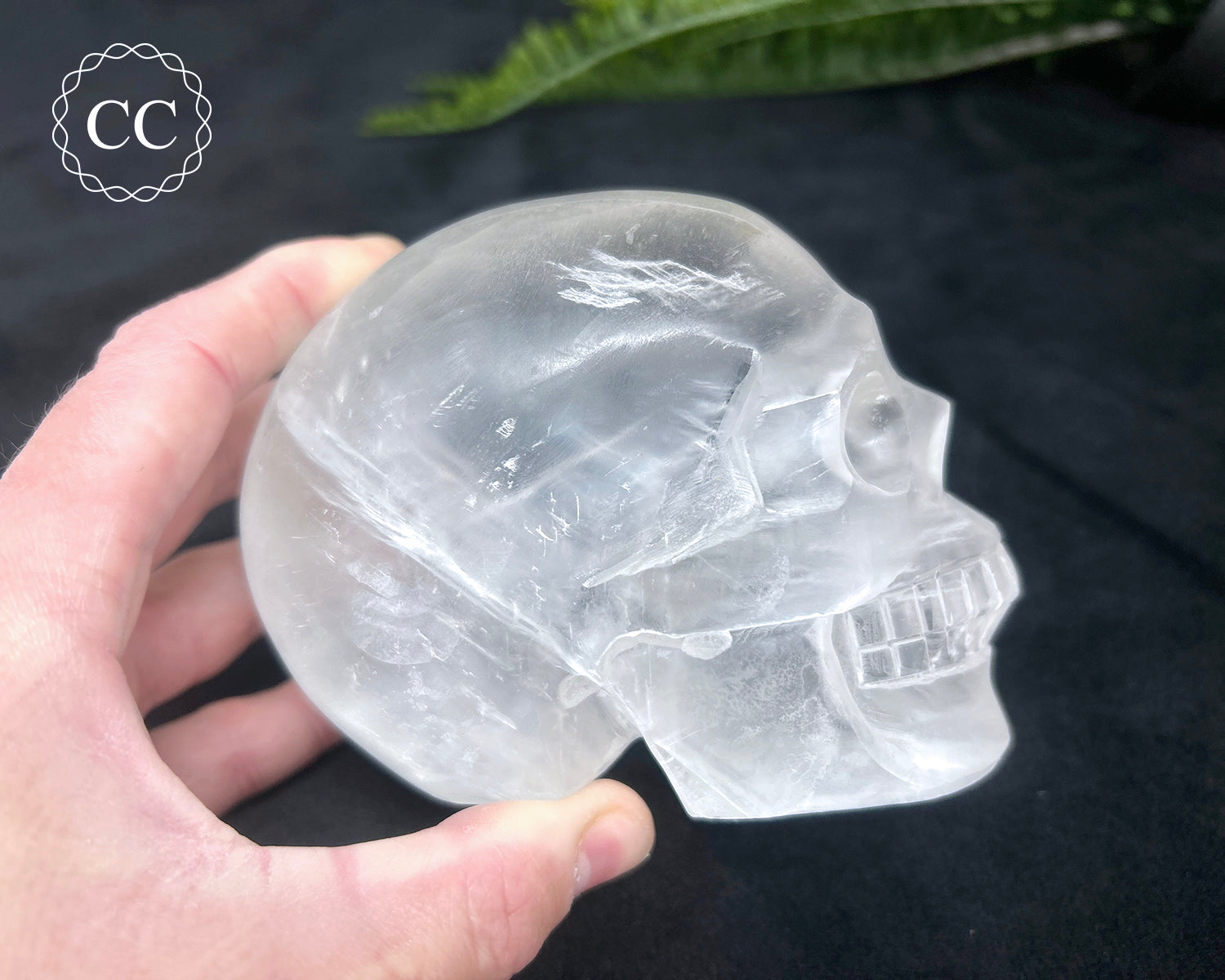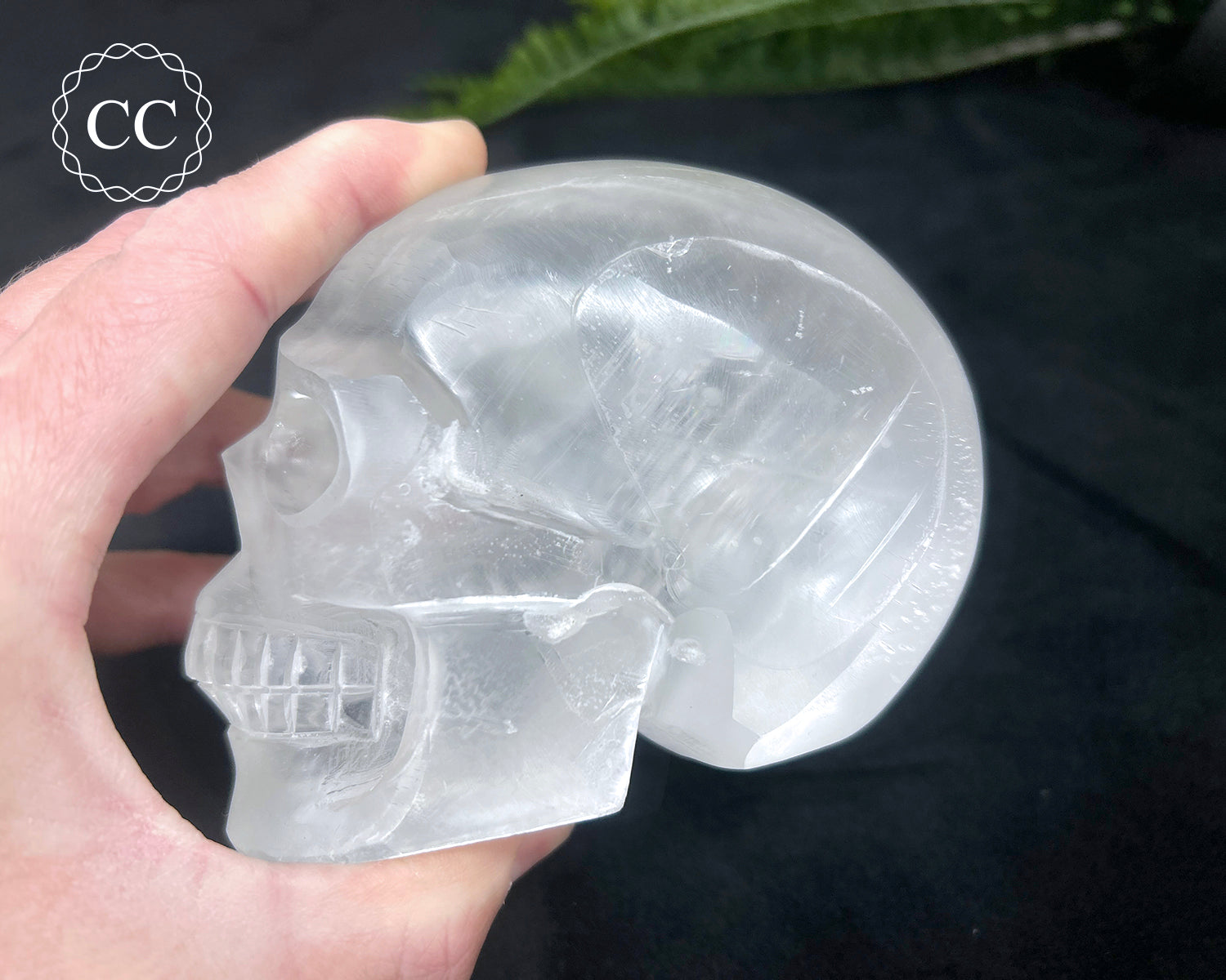 This incredible Selenite Skull has been carved from true Selenite, you can see the layers if you look from the top down. You will receive the exact crystal shown in the pictures.
