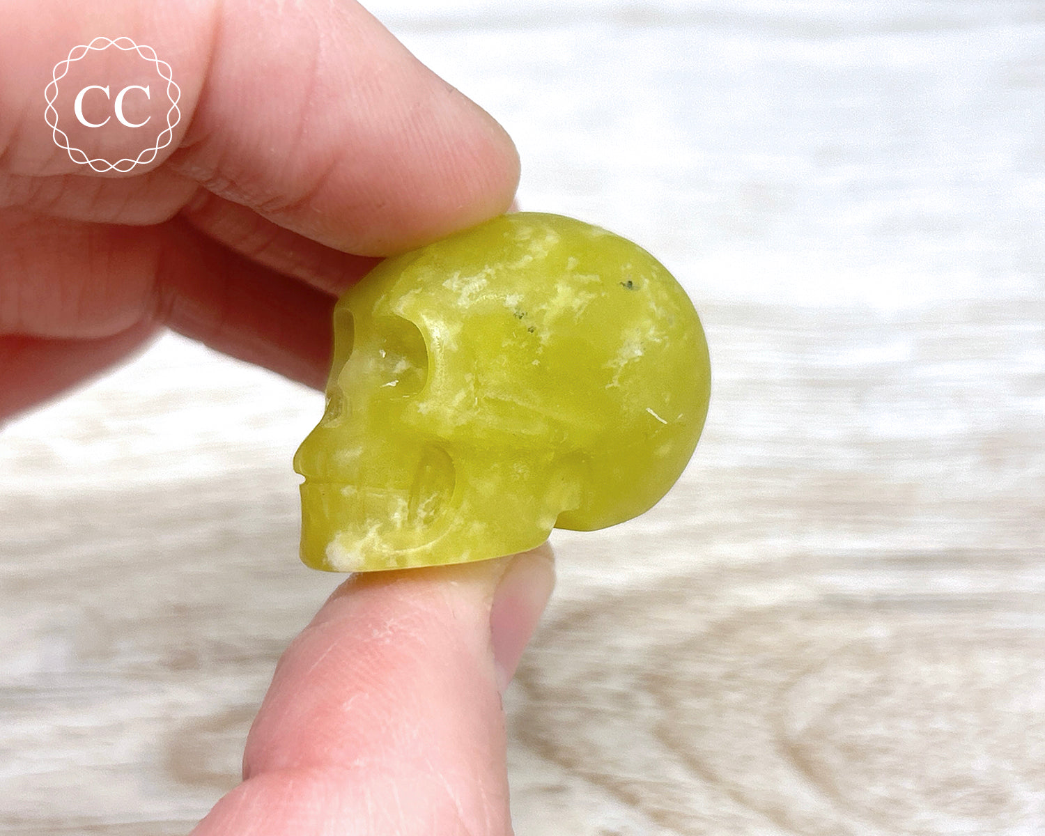 Beautifully detailed Serpentine Skull carvings, each one is approx 30 - 32mm across. You will receive one mini skull, the photos show an example of the different skulls we have available.