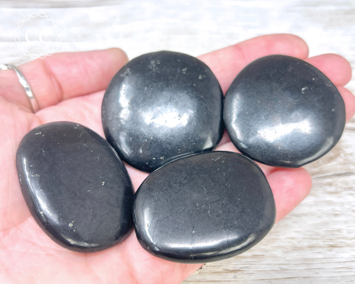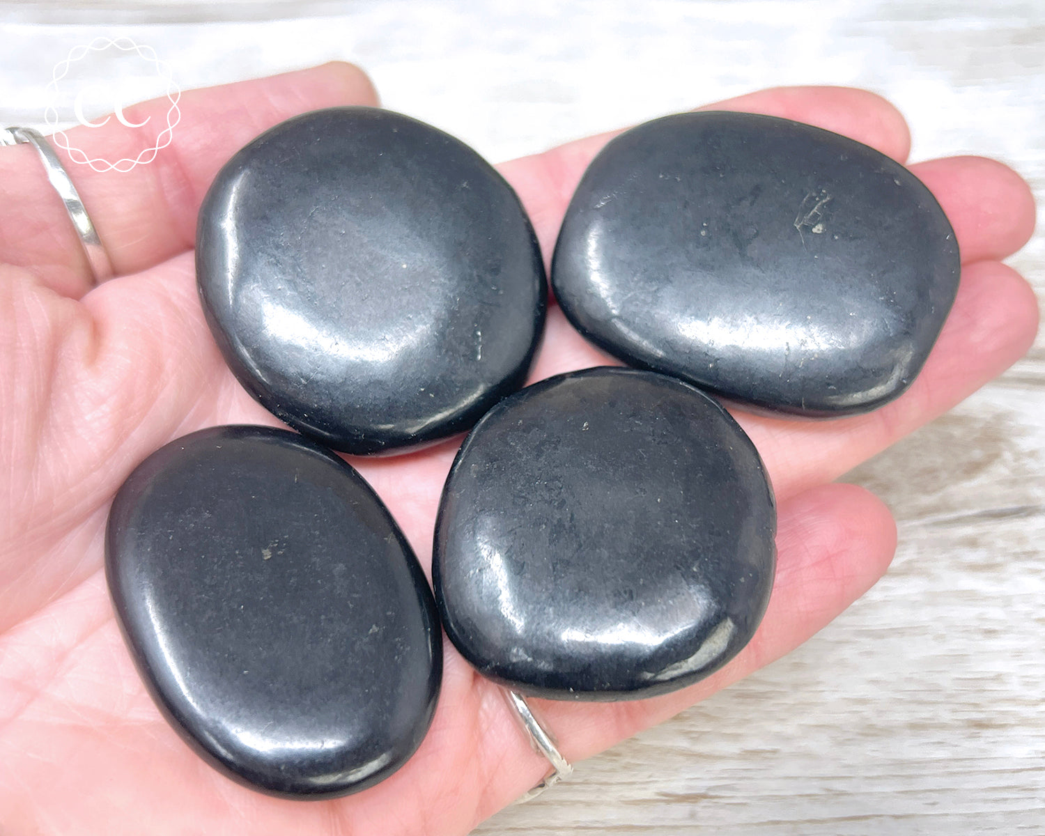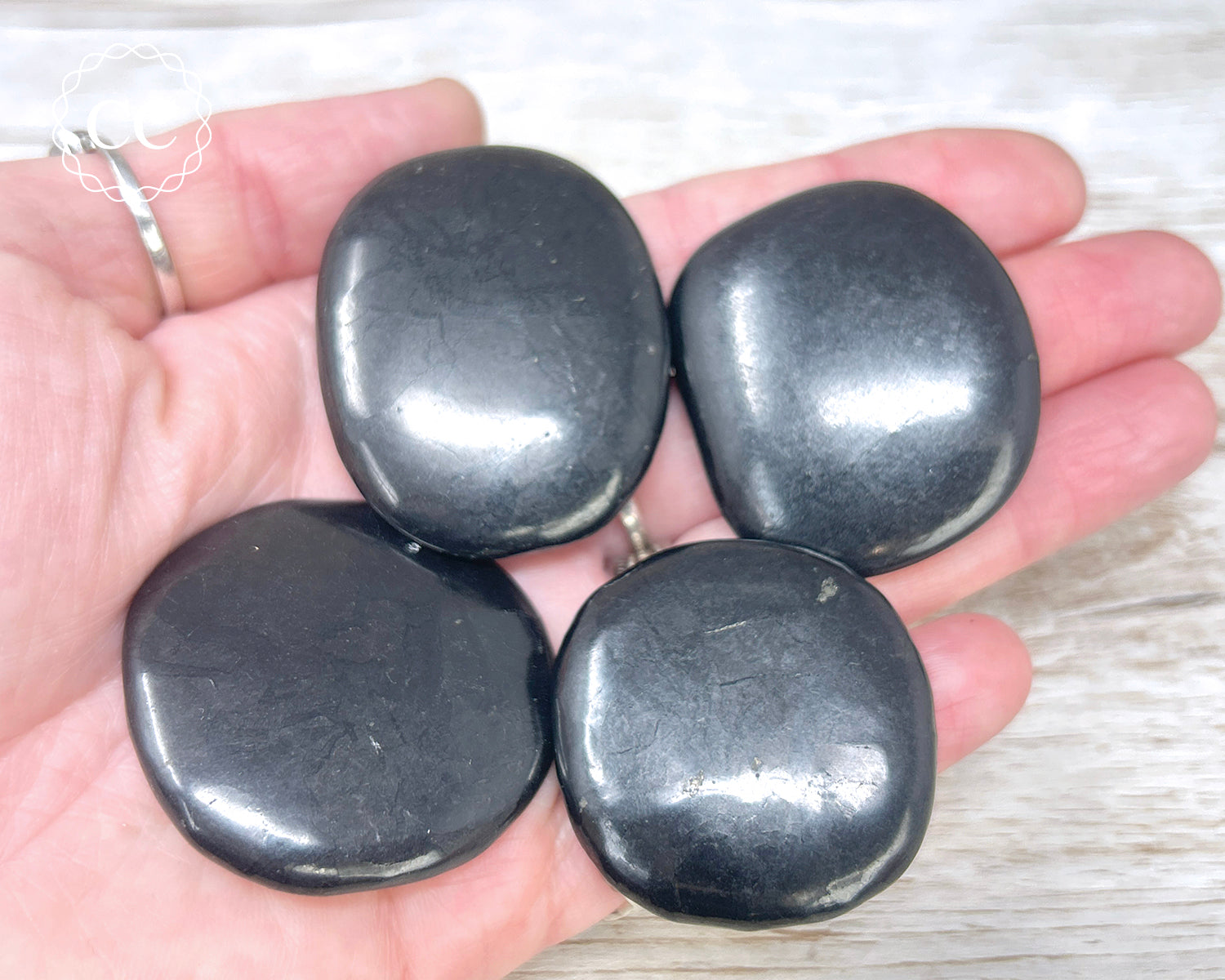 Thrse Shungite palmstones are polished smooth, each one is approx 37 to 45 mm across, you will receive one Shungite palm stone..