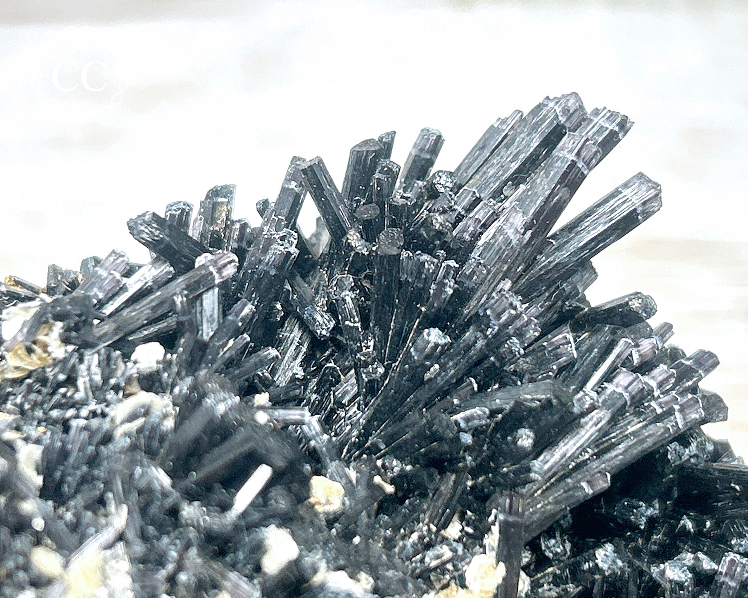 Black Tourmaline is a variety of Tourmaline known as Schorl, and commonly forms with other crystals including Mica, Quartz and Aquamarine.