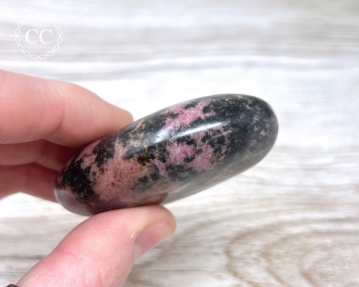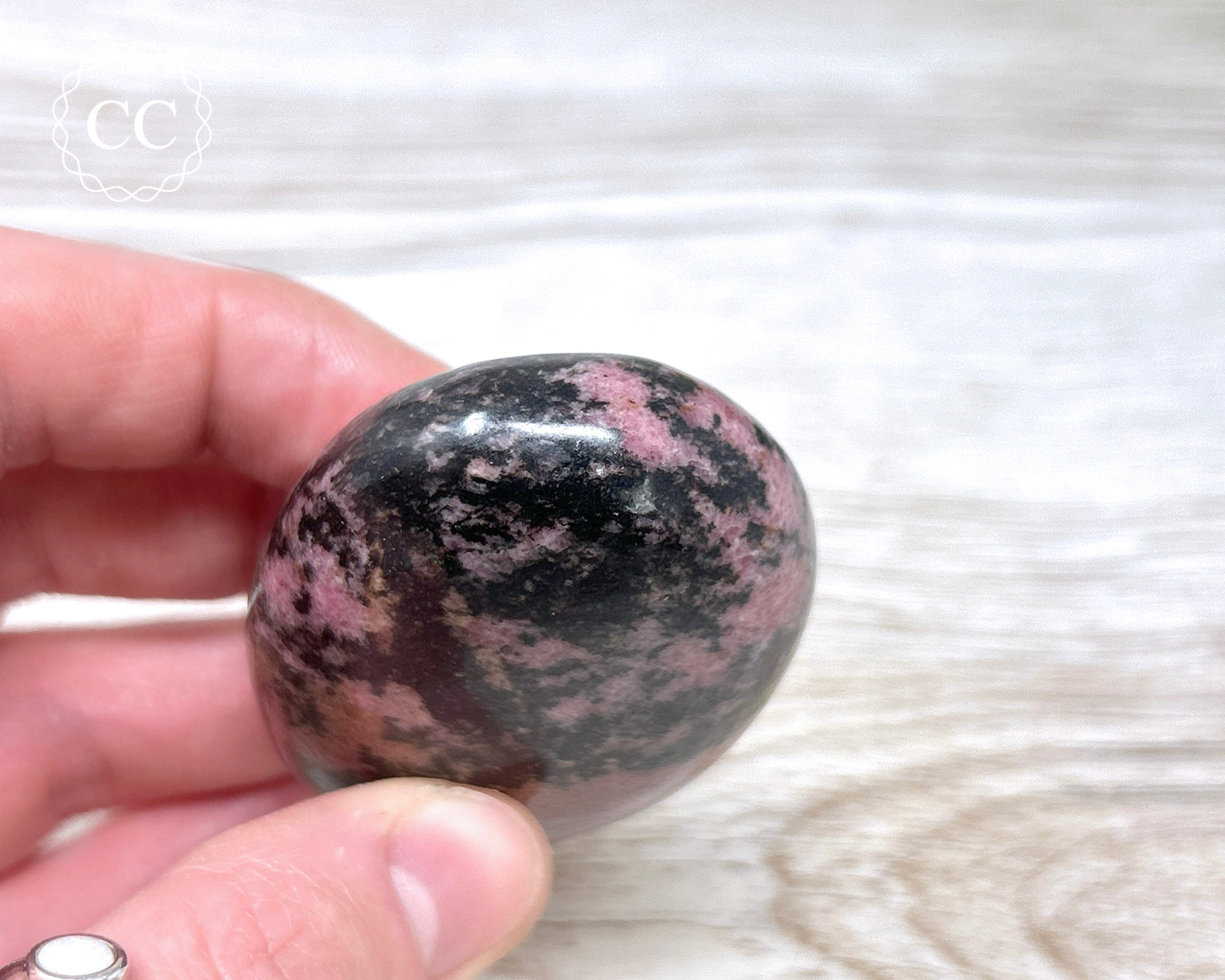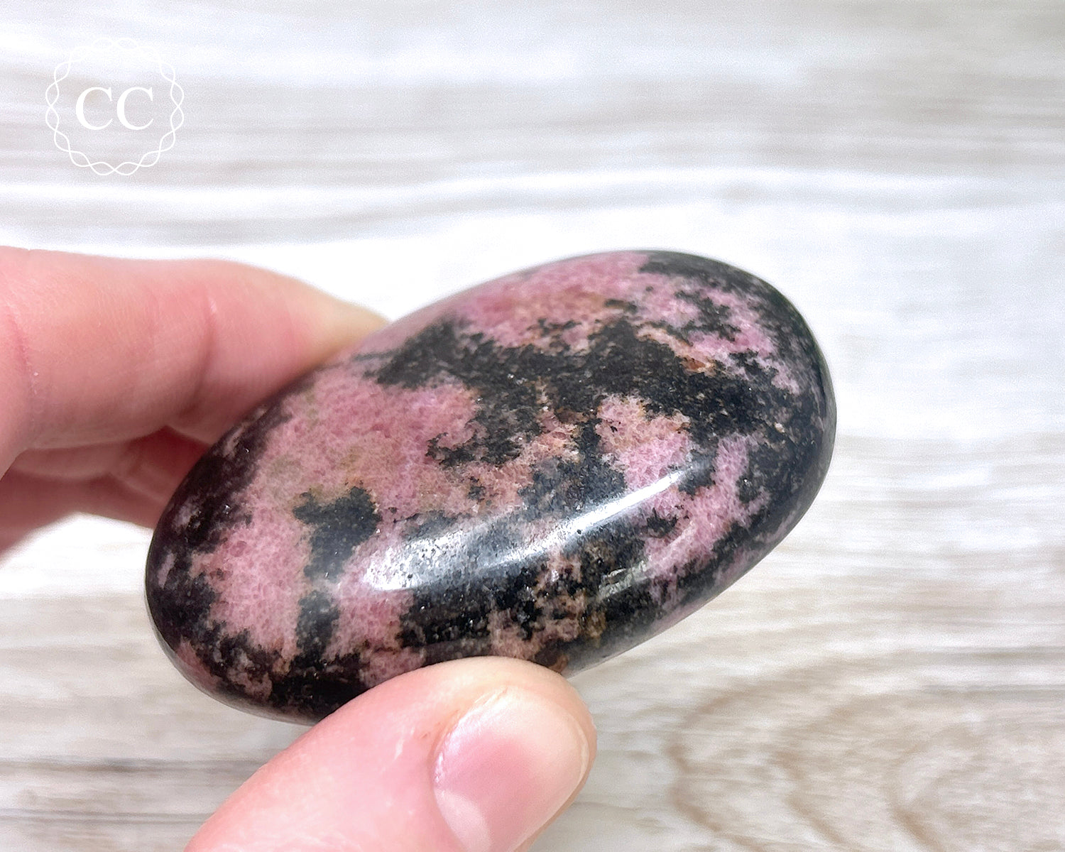 Beautiful chunky Rhodonite palm stone from Madagascar. You will receive the exact Rhodonite palmstone shown in the pictures.