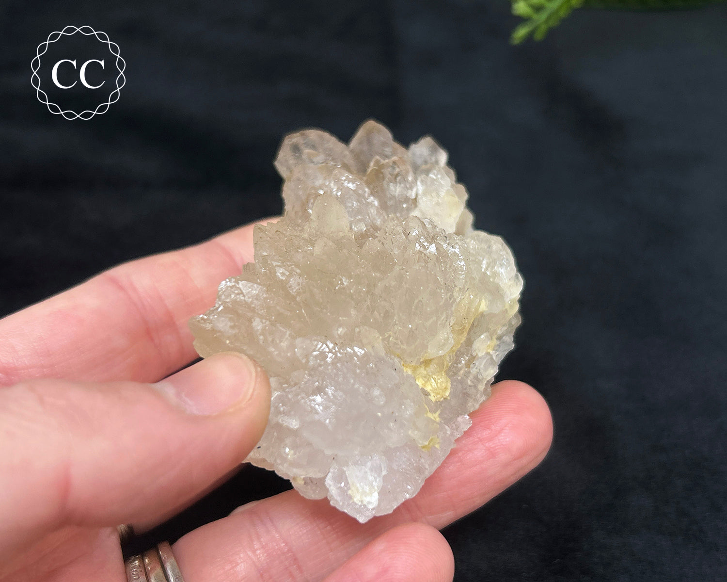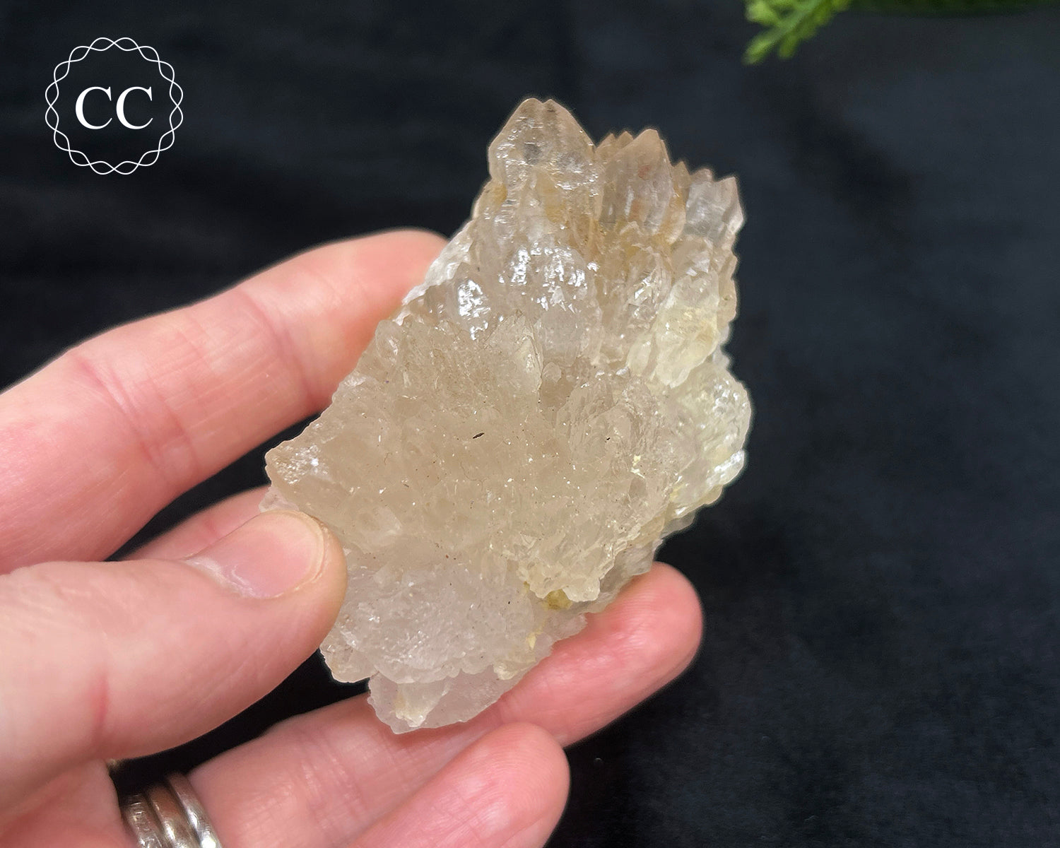 This sweet Quartz cluster is from Brazil has grown in a slightly curved formation, reminiscent of Flower Amethyst. You will receive the exact item pictured.