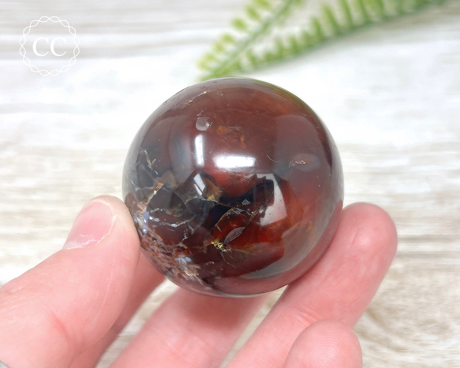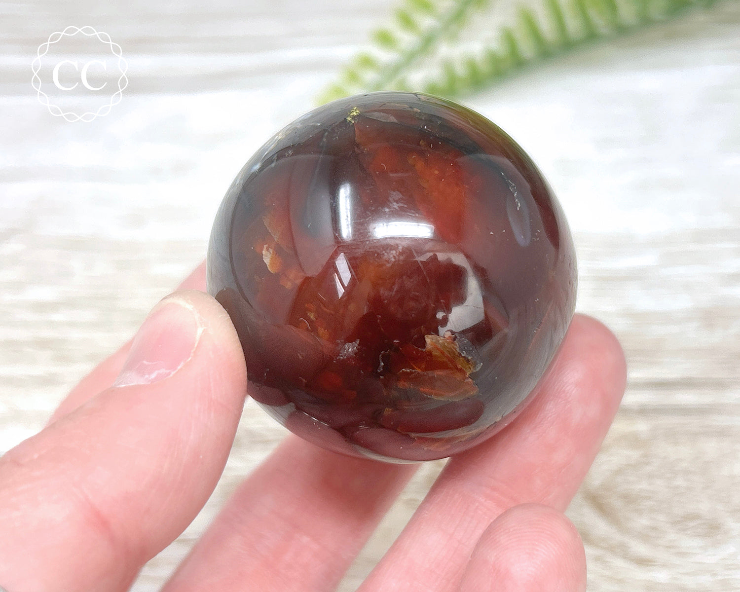 Beautiful Carnelian Sphere from Madagascar, hand picked for it's patterns and soft colour. You will receive the exact Carnelian crystal pictured. Sphere stand not included, choice of sphere stands available - browse stands