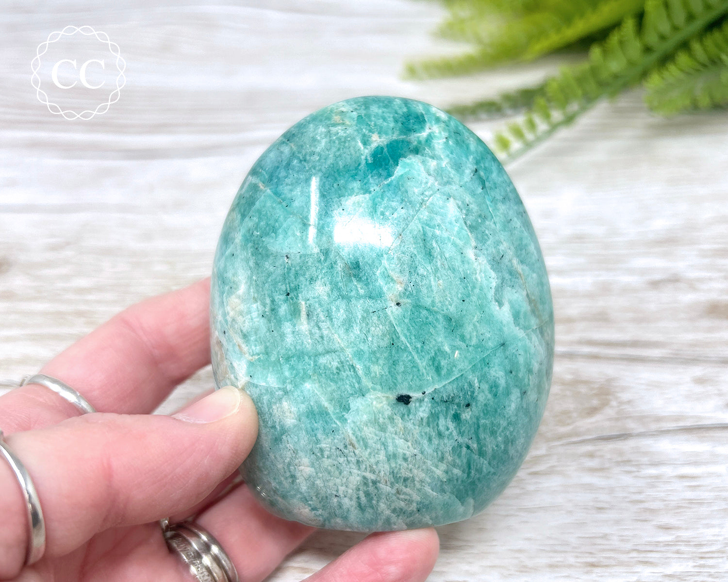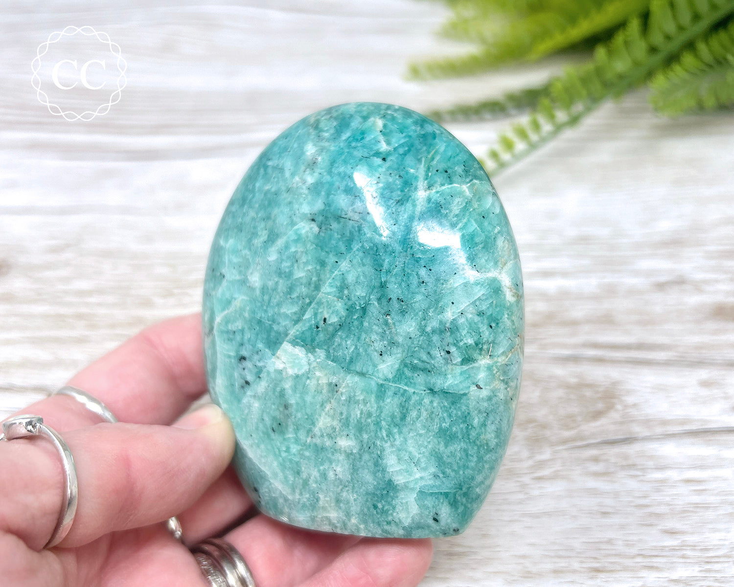 Beautiful blue green Amazonite cut base freeform with a hint of shimmer from Madagascar. You will receive the exact Amazonite crystal shown in the photos.