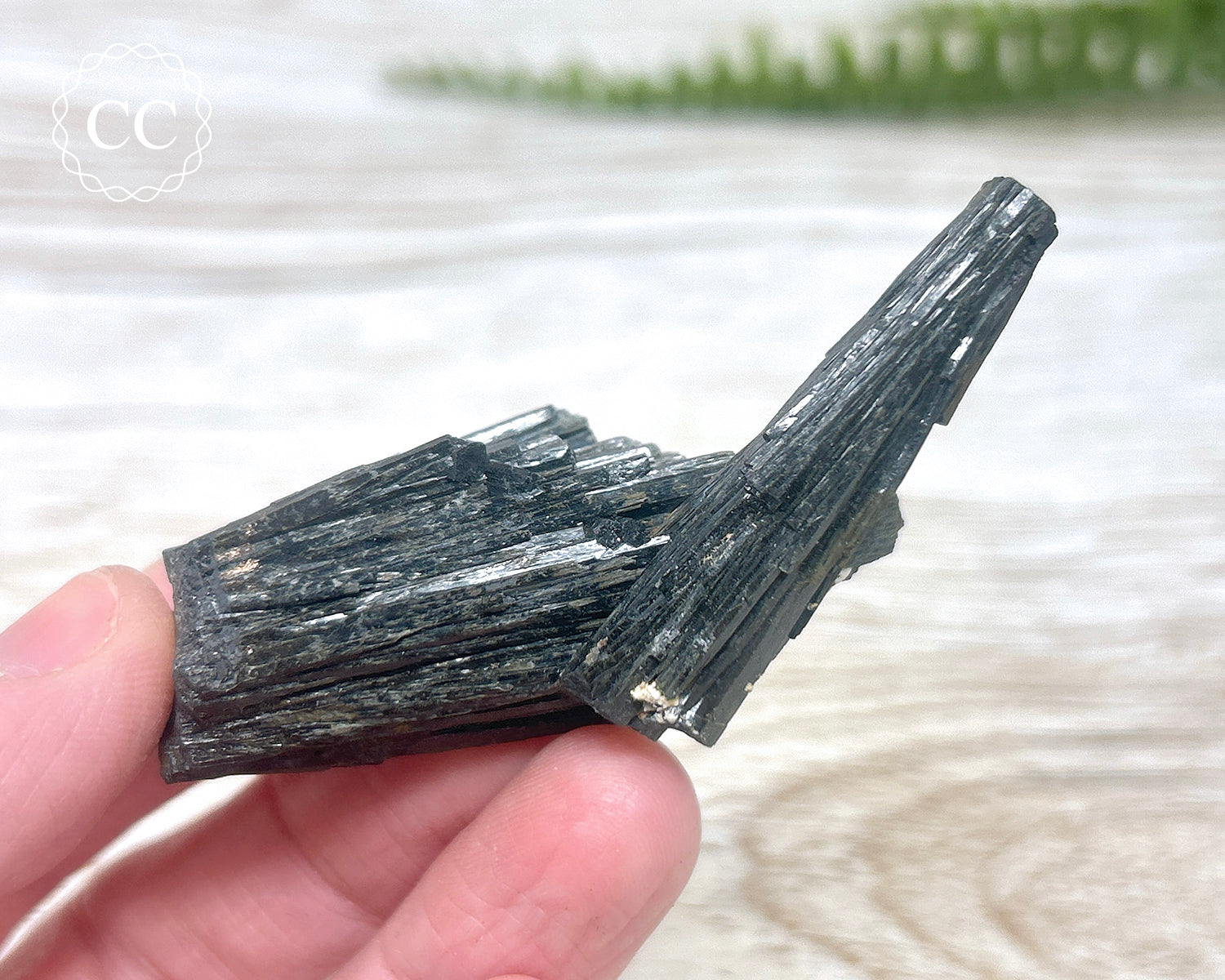 A sweet cluster of elongated Black Tourmaline crystals from Namibia, almost reminiscent of Black Kyanite. You will receive the exact Black Tourmaline crystal pictured.