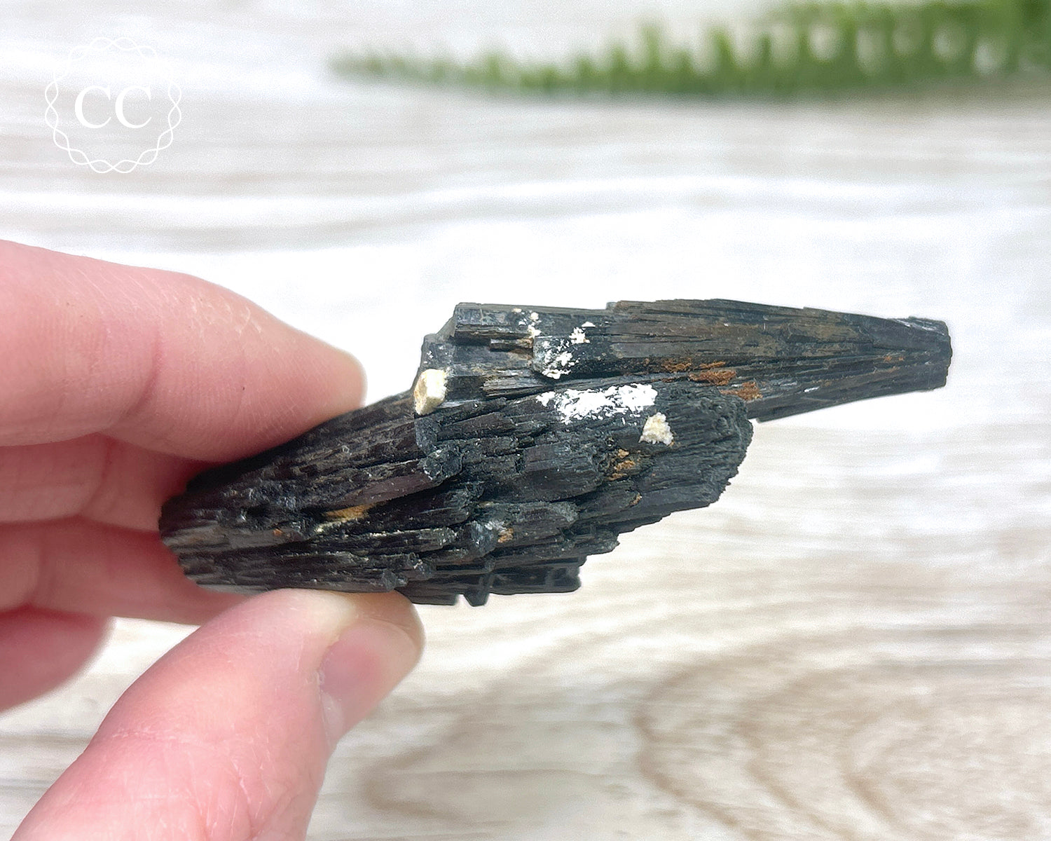 Black Tourmaline is a variety of Tourmaline known as Schorl, and commonly forms with other crystals including Mica, Quartz and Aquamarine.