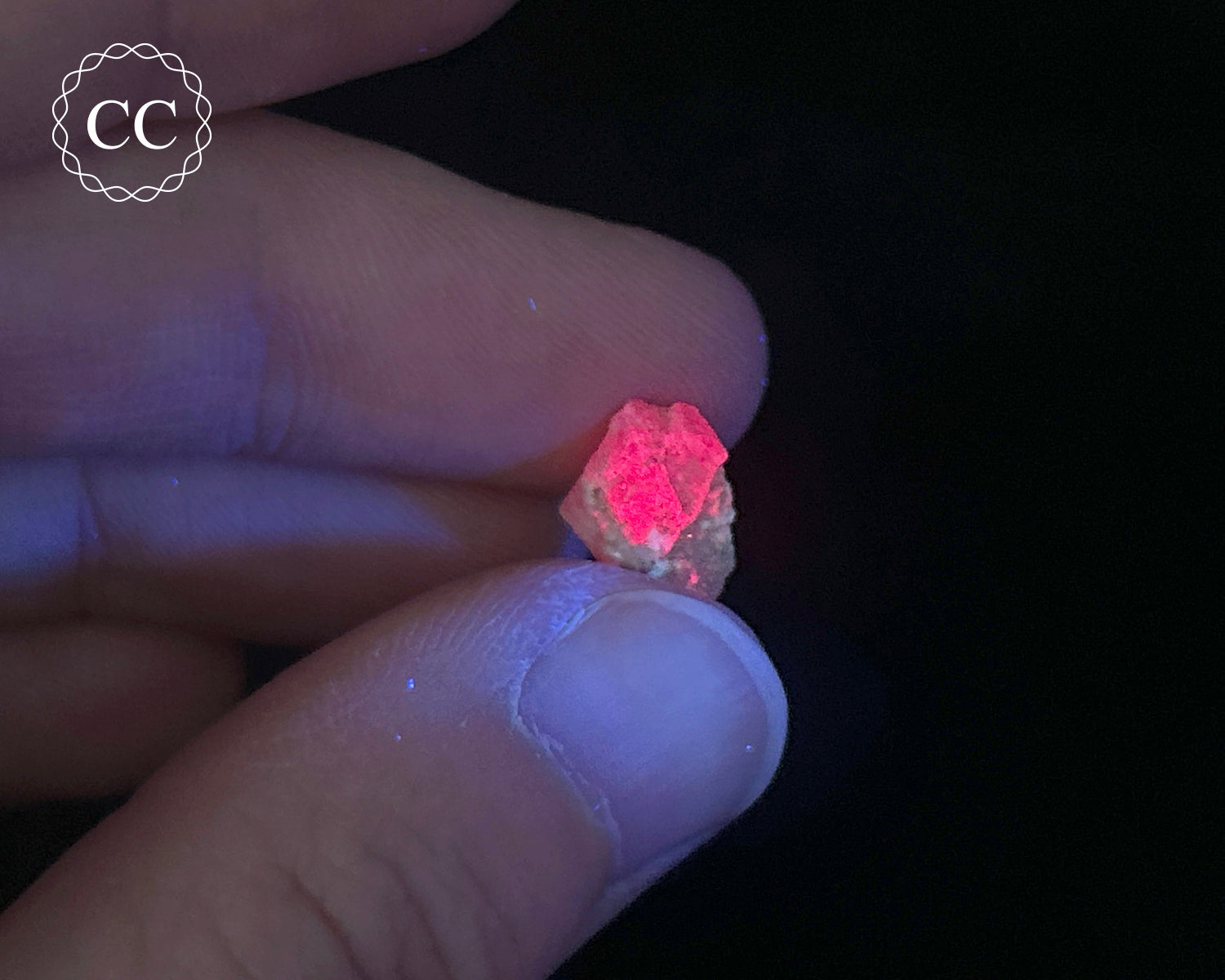 This lovely small Tugtupite specimen comes from Greenland, and looks incredible under UV! You will receive the exact Tugtupite crystal pictured.