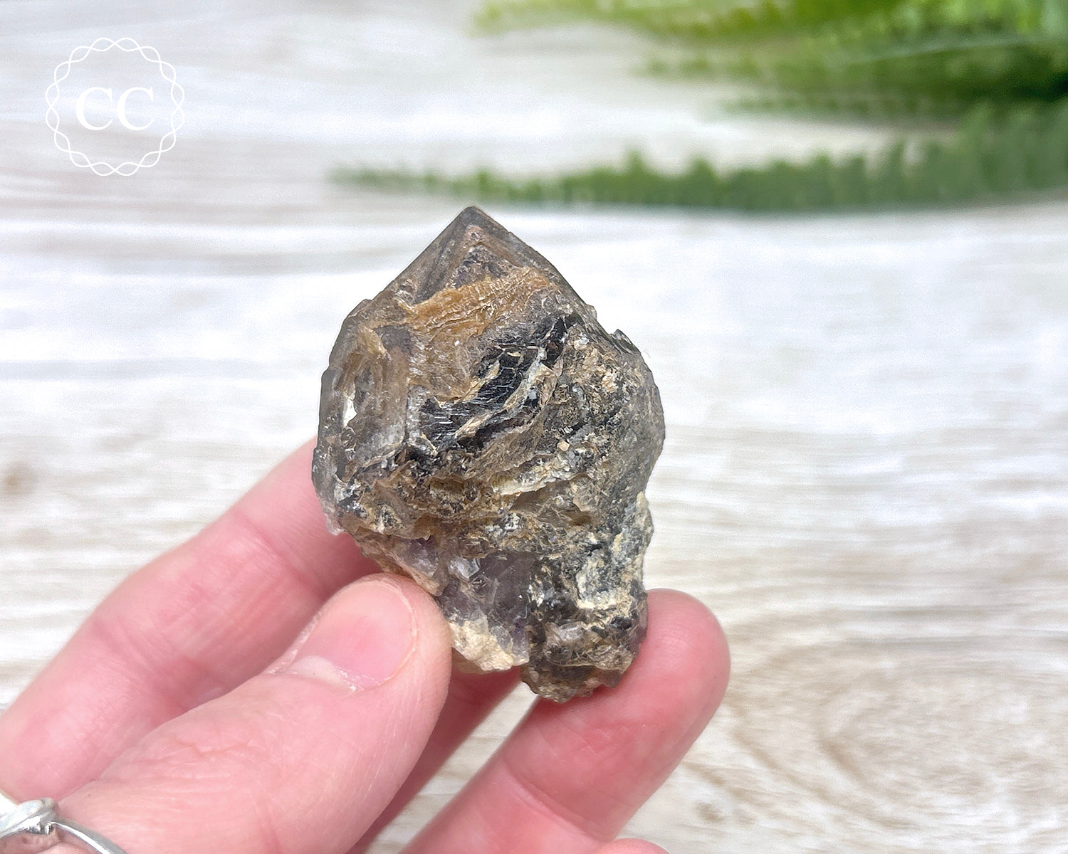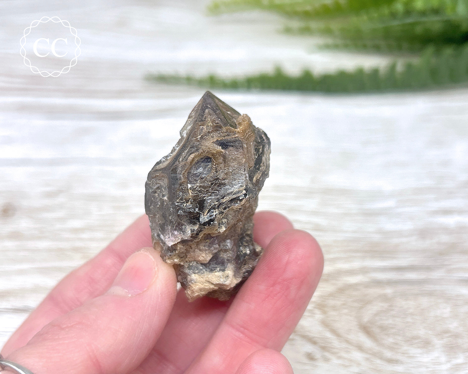 This unusual deep smokey Amethyst crystal is from the Goboboseb Mountains in the Brandberg region in Namibia. You will receive the exact Brandberg Amethyst crystal pictured.