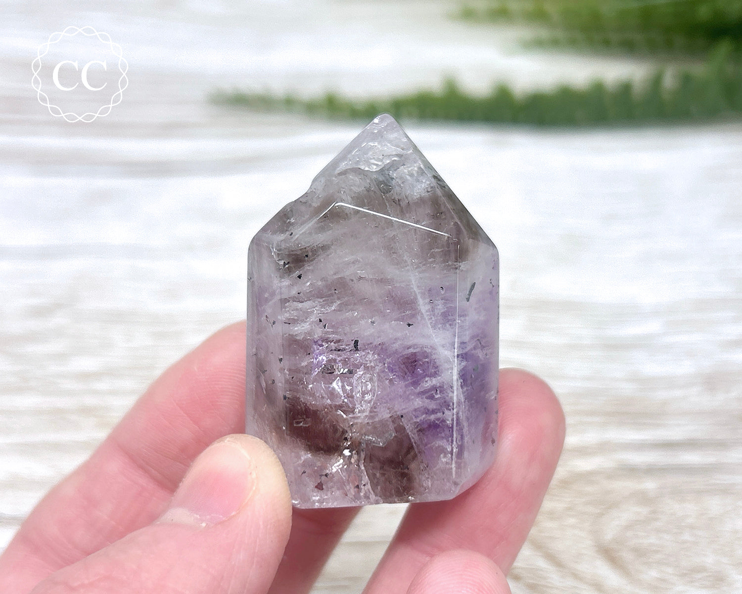This is a very rare example of polished Brandberg Amethyst crystal from Namibia, with zoning of smoky purple and some Hematite inclusions. You will receive the exact Brandberg Amethyst crystal pictured.