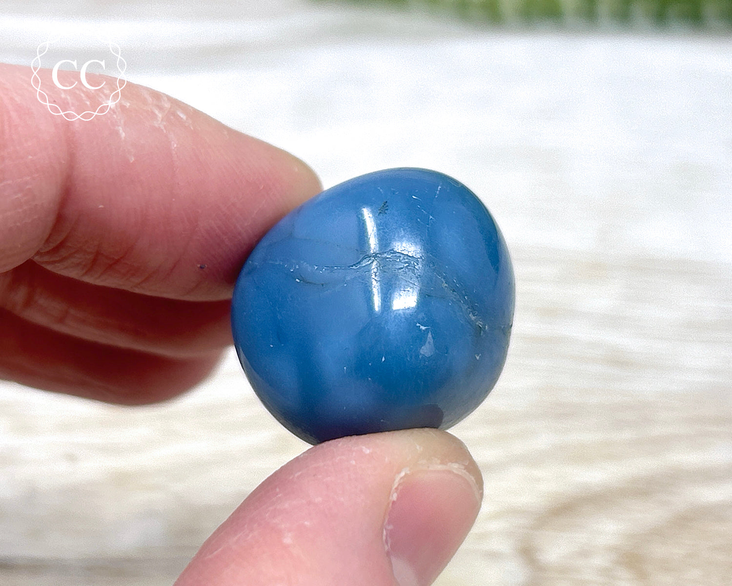 This sweet polished Blue Opal is from Rajasthan, India and has a beautiful soft blue colour. You will receive the exact crystal pictured.