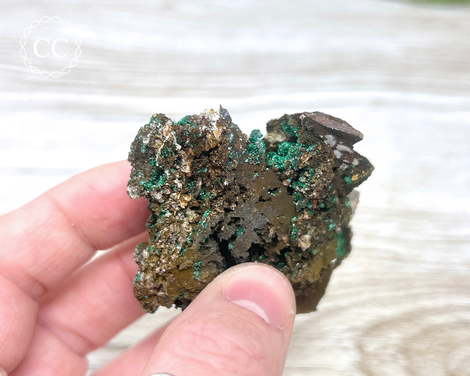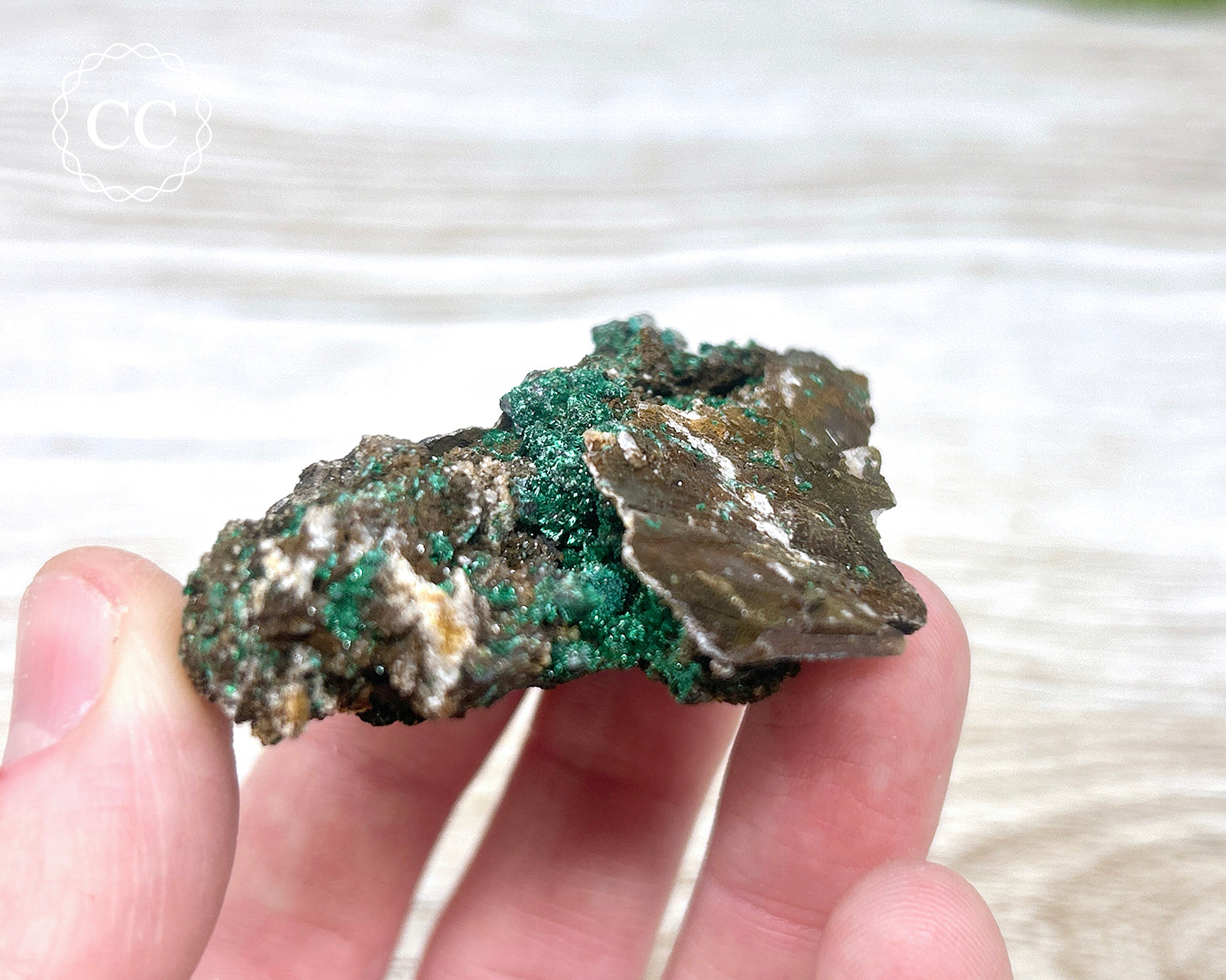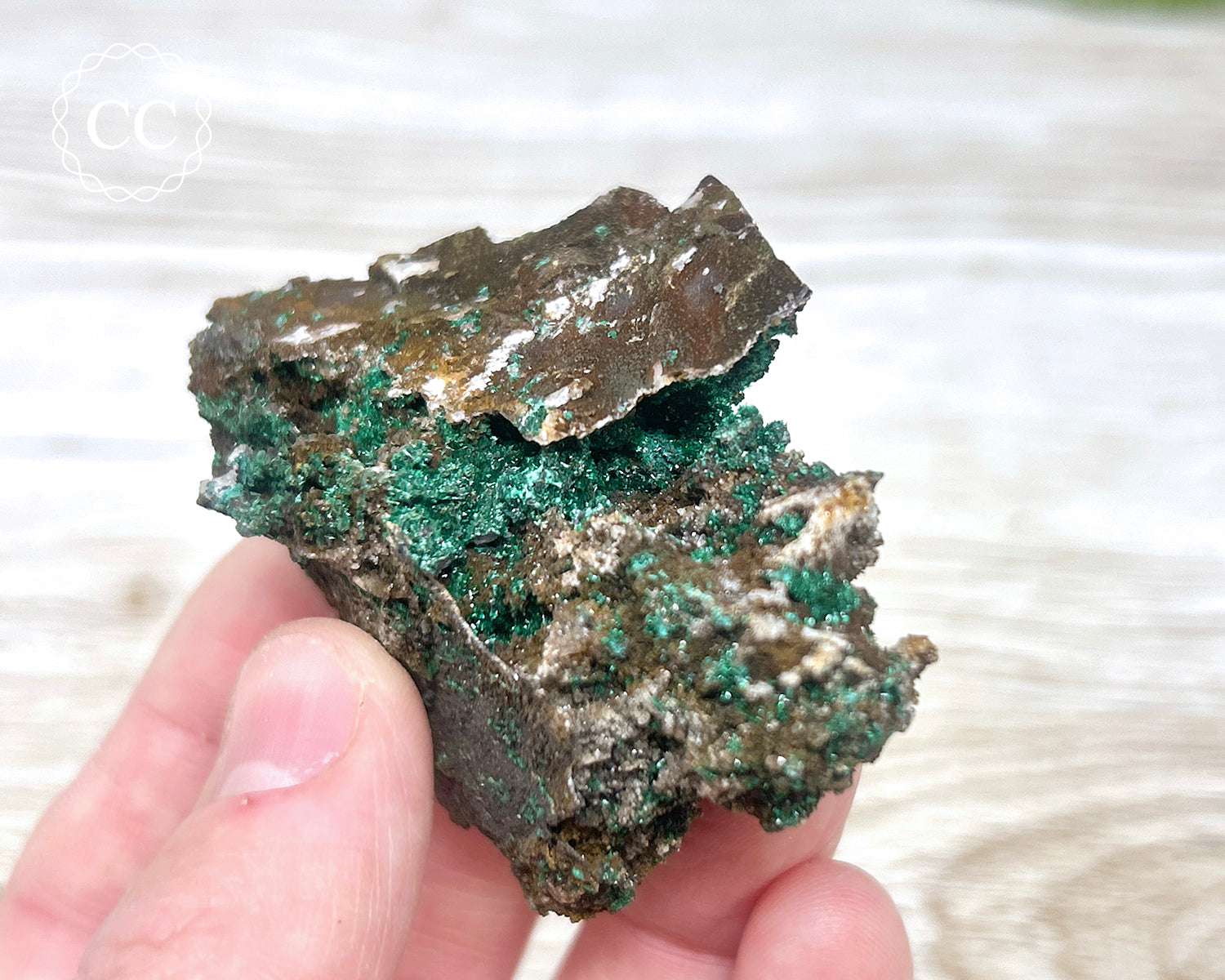 This beautiful rare specimen of deep green Brochantite crystals on matrix is from Morocco. The crystals are fragile, so should not be handled too much. You will receive the exact Brochantite specimen pictured.