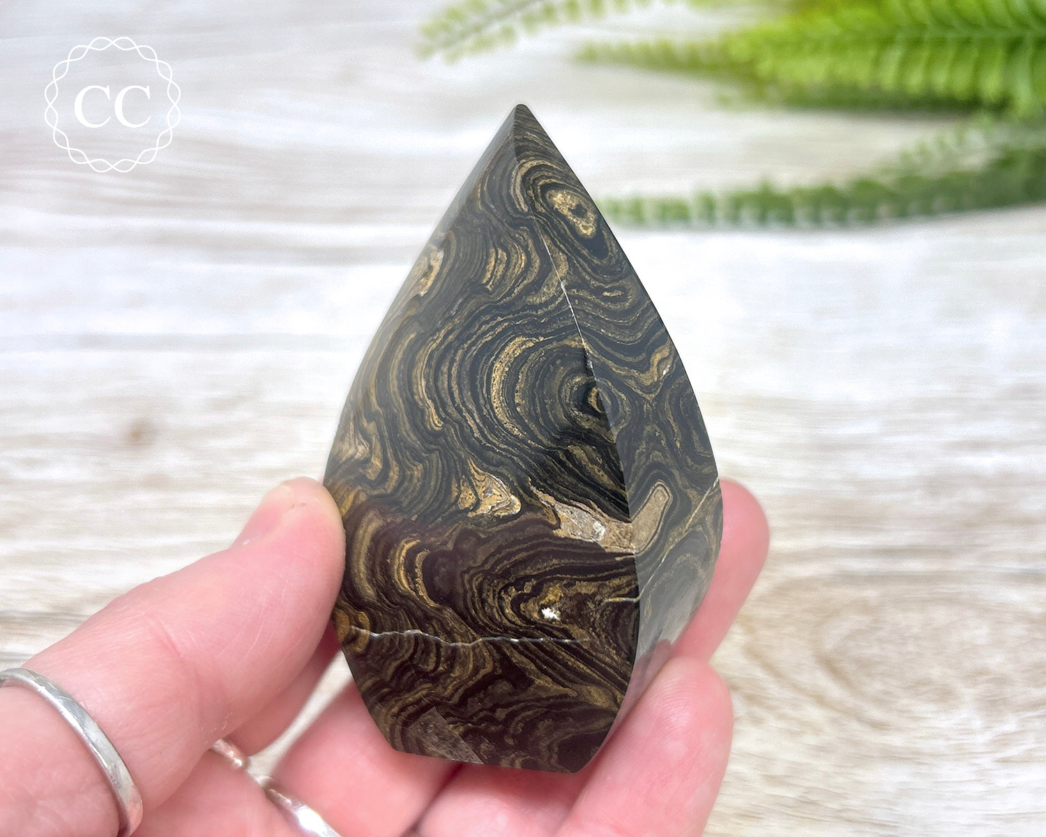 This beautiful Stromatolite flame is an unusual shape to see Stromatolite polished into, it shows off the wavy growth patterns well. You will receive the exact Stromatolite crystal pictured.