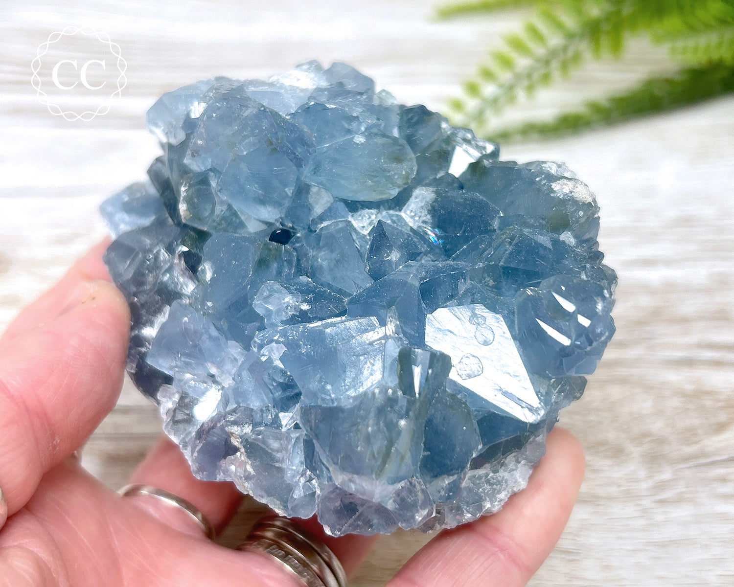This lovely hand picked Celestite specimen is from Madagascar. This piece has wonderful colour, good terminations and it also has some slight green areas, caused by the presence of Sulphur. You will receive the exact Celestite crystal pictured.