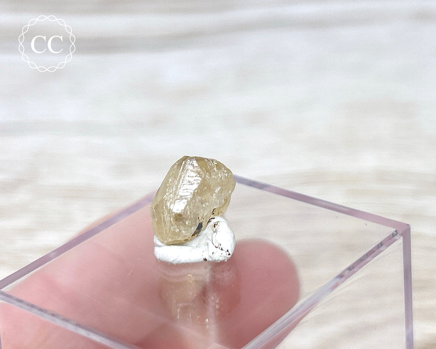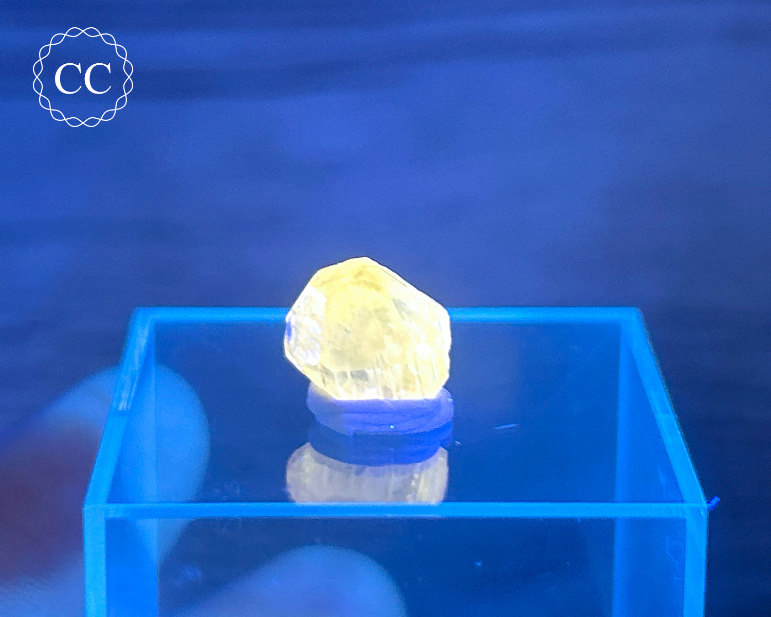 Nice sized singular crystal of Cerussite from Morocco that exhibits good yellow fluorescence under longwave UV. You will receive the exact crystal pictured.