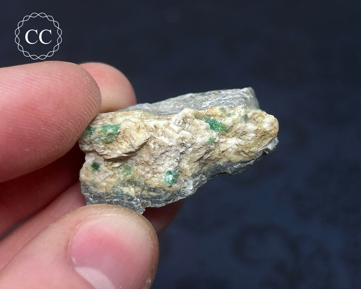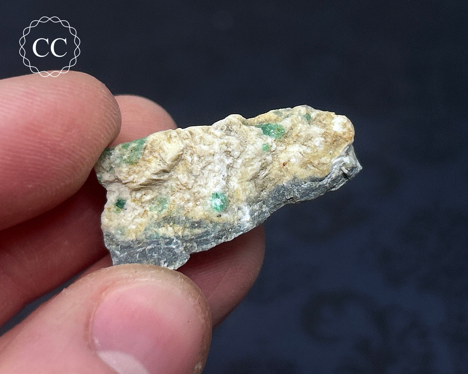 This unusual specimen from Byrud, Minnesund, Norway has nice examples of small Emerald crystals in a pale matrix. You will receive the exact crystal shown in the photos.