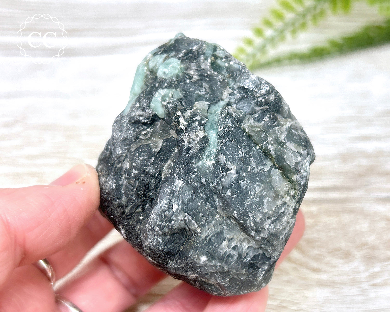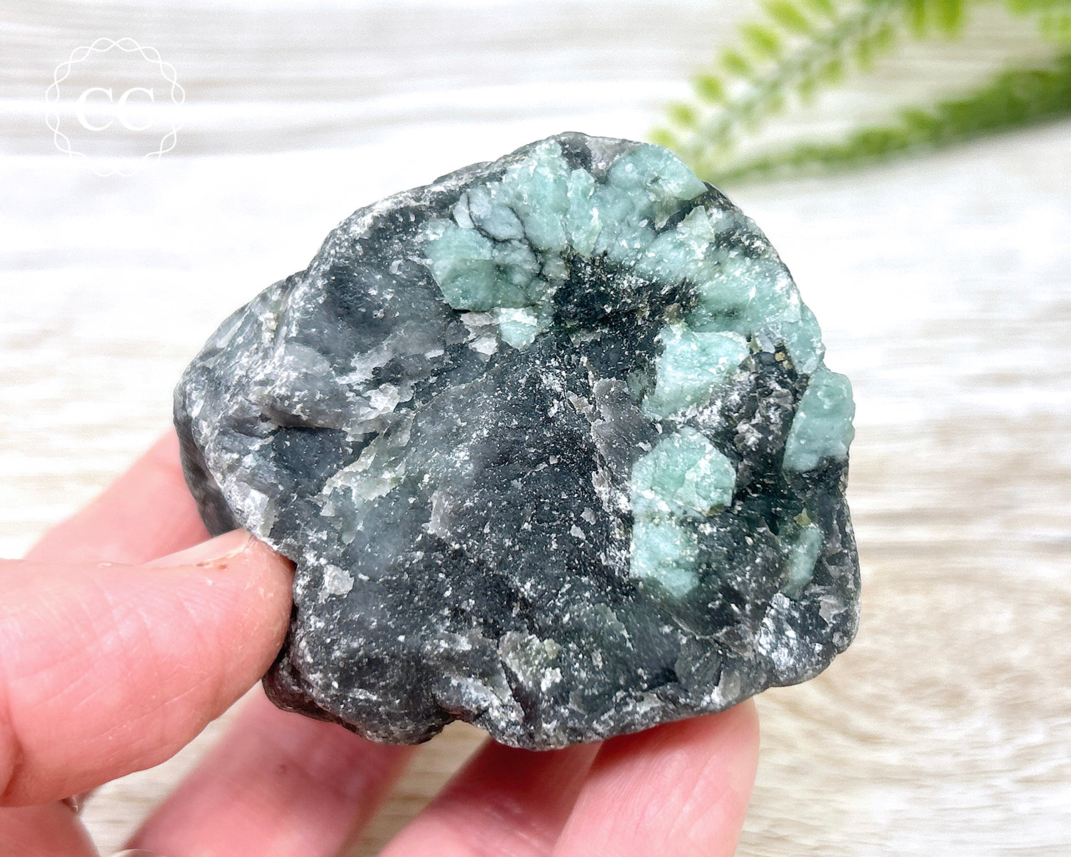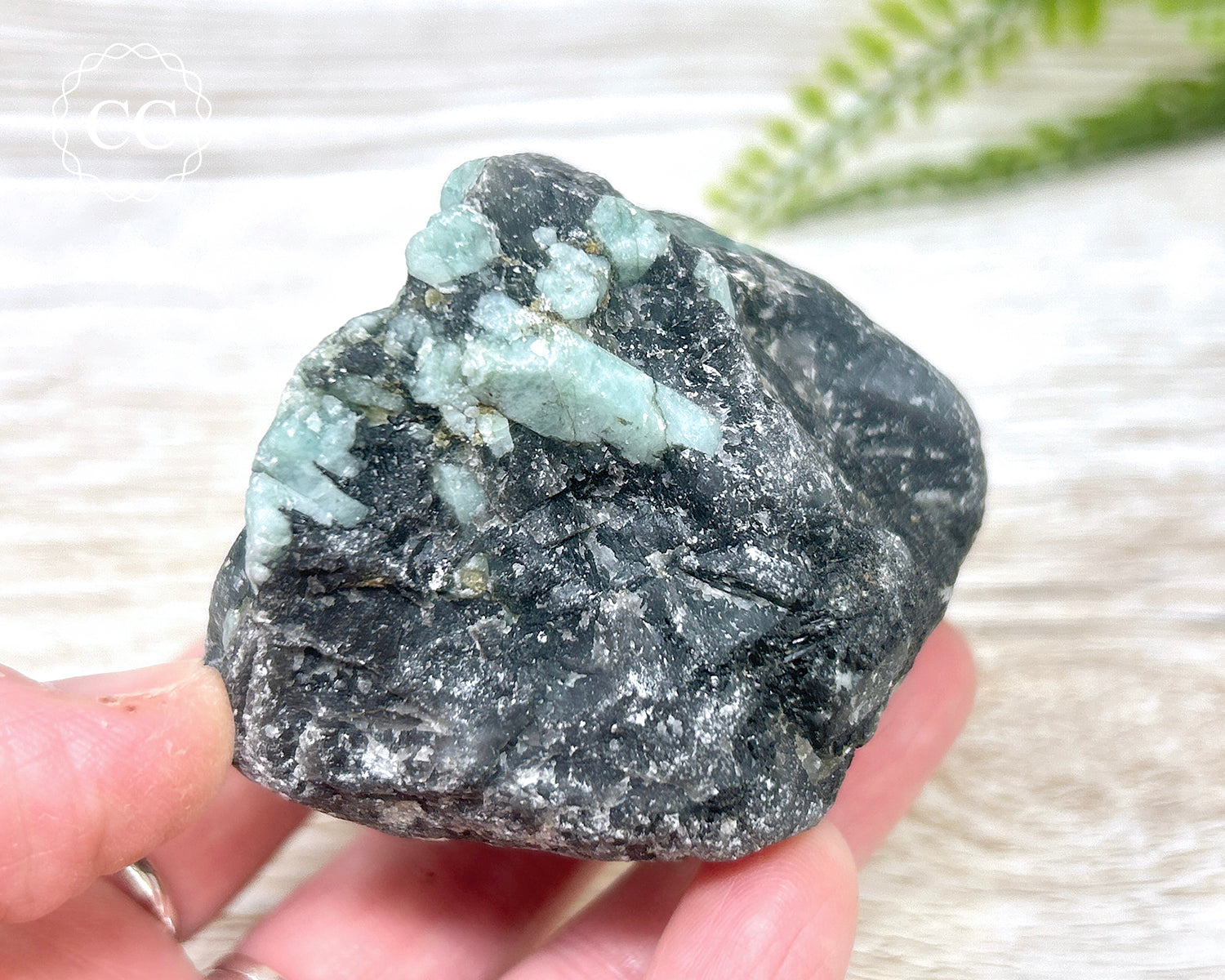 This lovely specimen from Bahia, Brazil has nice examples of Emerald crystals in matrix. You will receive the exact crystal shown in the photos.