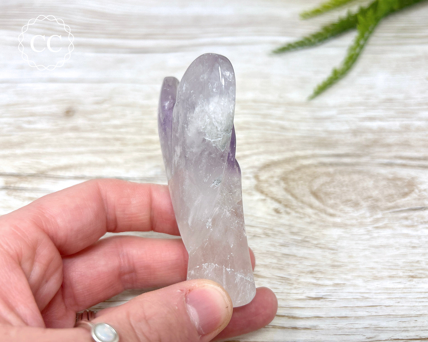 This beautiful Amethyst Angel has been hand carved by a family we import from in Brazil. You will receive the exact Amethyst crystal shown in the photos.