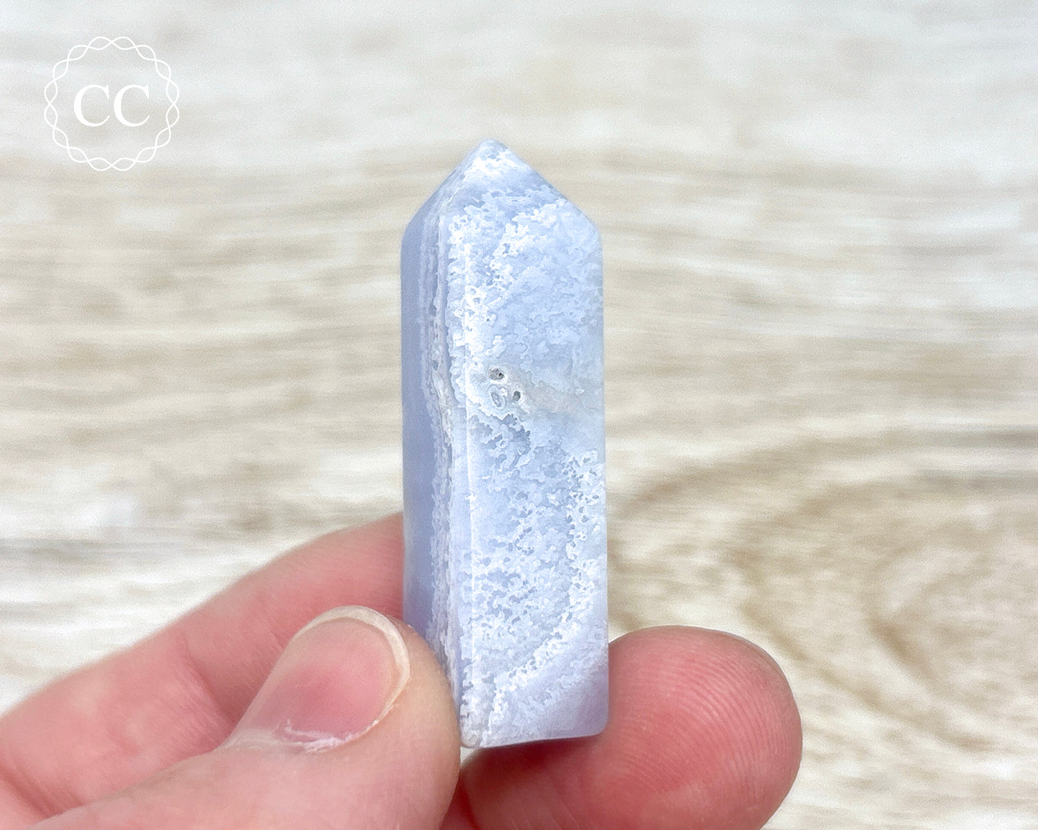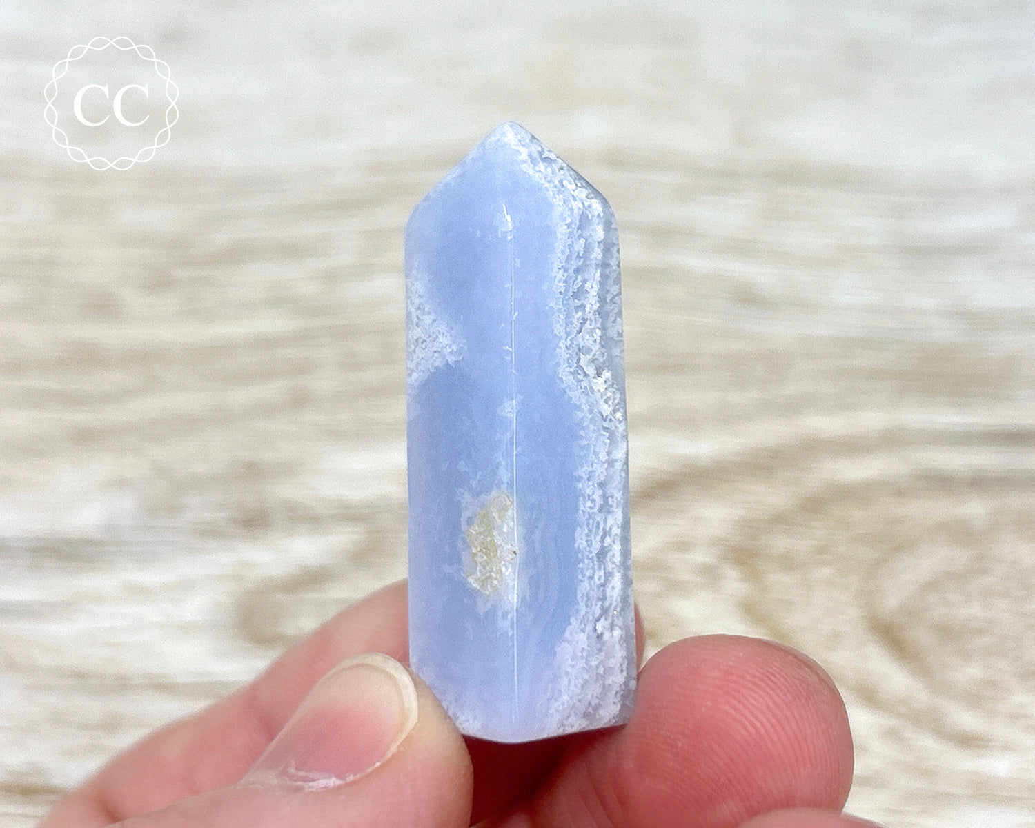 This beautiful Blue Lace Agate Tower is from Namibia, the original Blue Lace mine with well defined banding, rather than the newer find from Malawi. You will receive the exact crystal pictured.