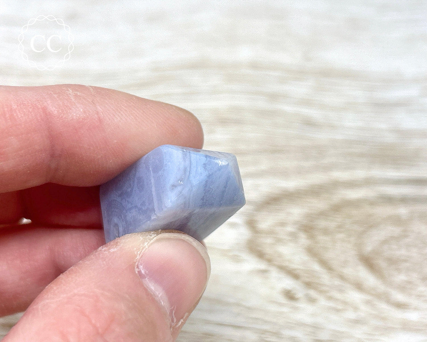 This beautiful Blue Lace Agate Tower is from Namibia, the original Blue Lace mine with well defined banding, rather than the newer find from Malawi. You will receive the exact crystal pictured.
