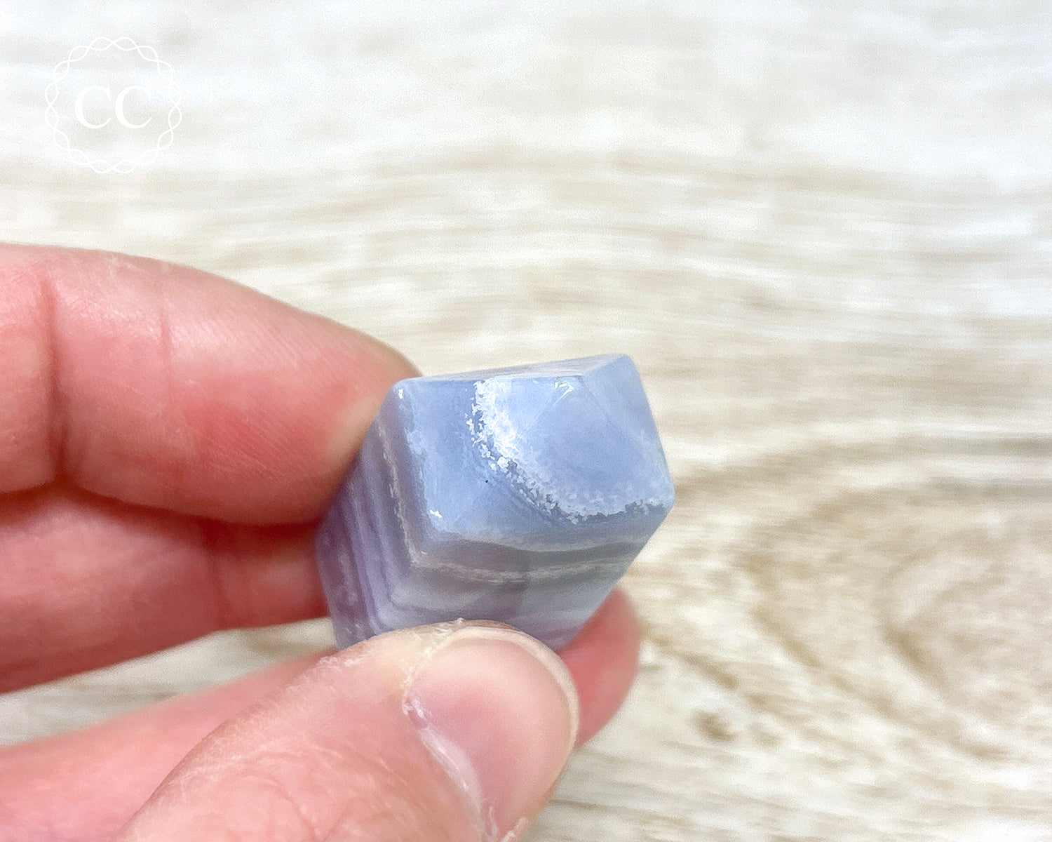 This beautiful Blue Lace Agate Tower is from Namibia, the original Blue Lace mine with well defined banding, rather than the newer find from Malawi. You will receive the exact crystal pictured.