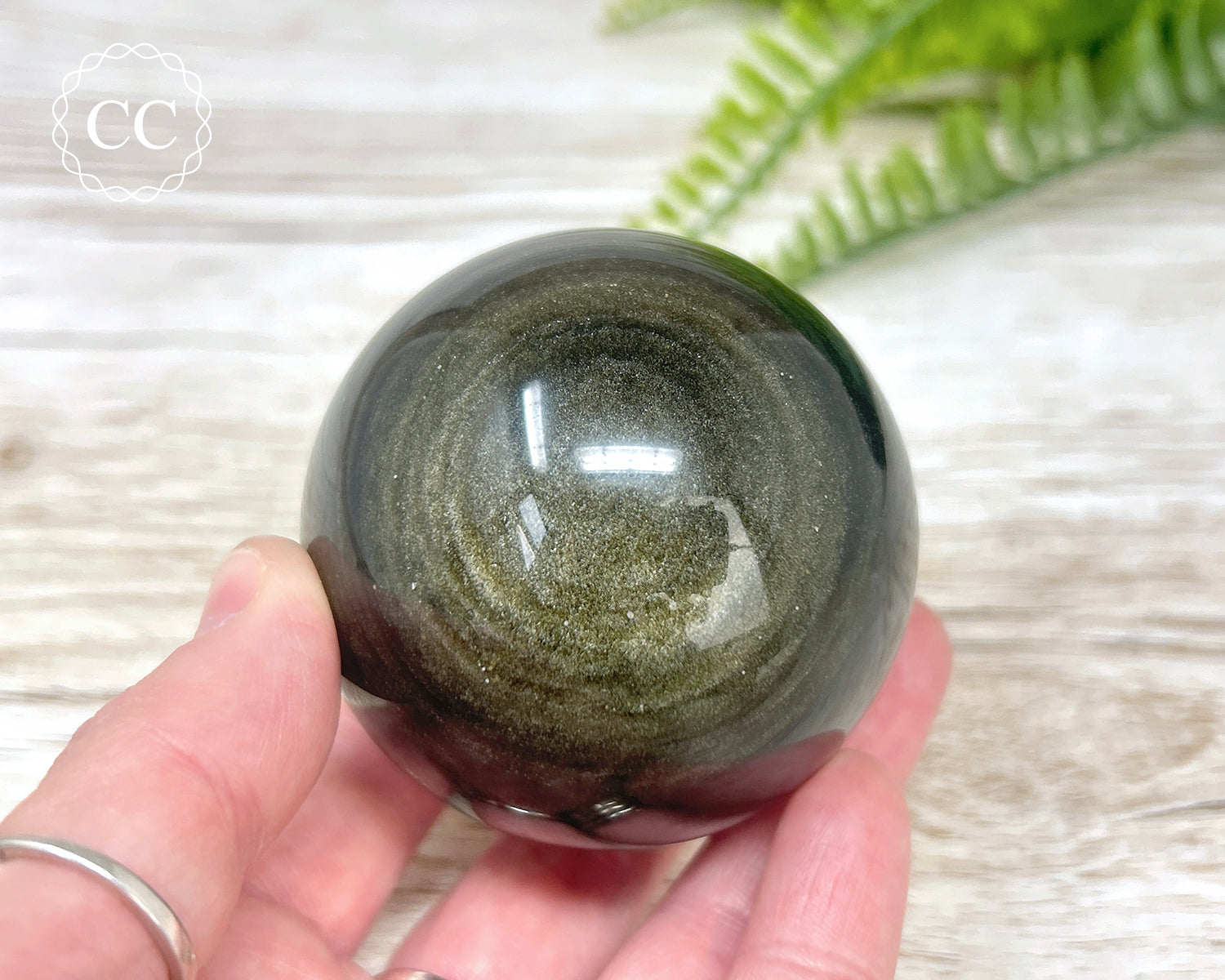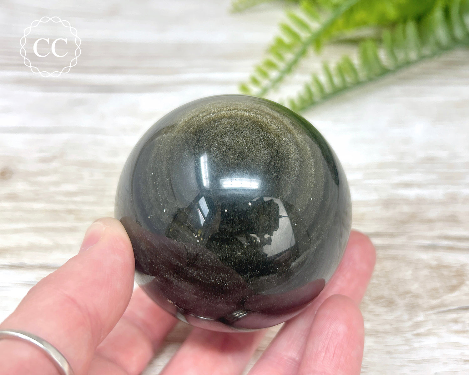 Shimmering Gold Sheen Obsidian sphere, the gold sheen effect is best viewed under bright light. You will receive the exact crystal shown. Stand not included, we have a variety of options available to purchase here.