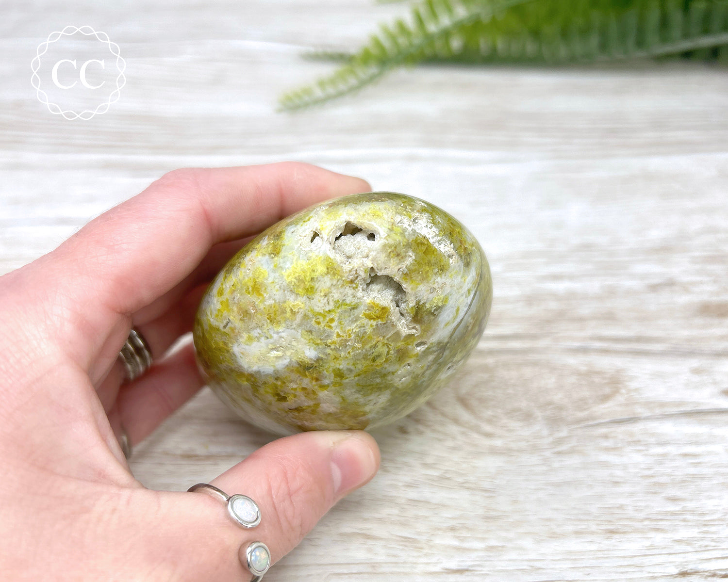 Lovely Green Opal cut base freeform, also known as Green Apple Opal, from Madagascar. You will receive the exact Green Opal crystal pictured.