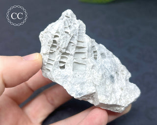 This incredible specimen is fossil Coral from Clay Center, Ohio, with the empty coral tubes lined with tiny sparkling Calcite crystals that cause it to fluoresce yellow under longwave UV. You will receive the exact item pictured.